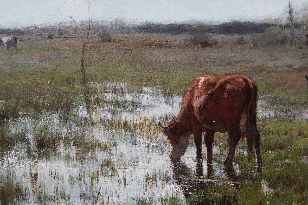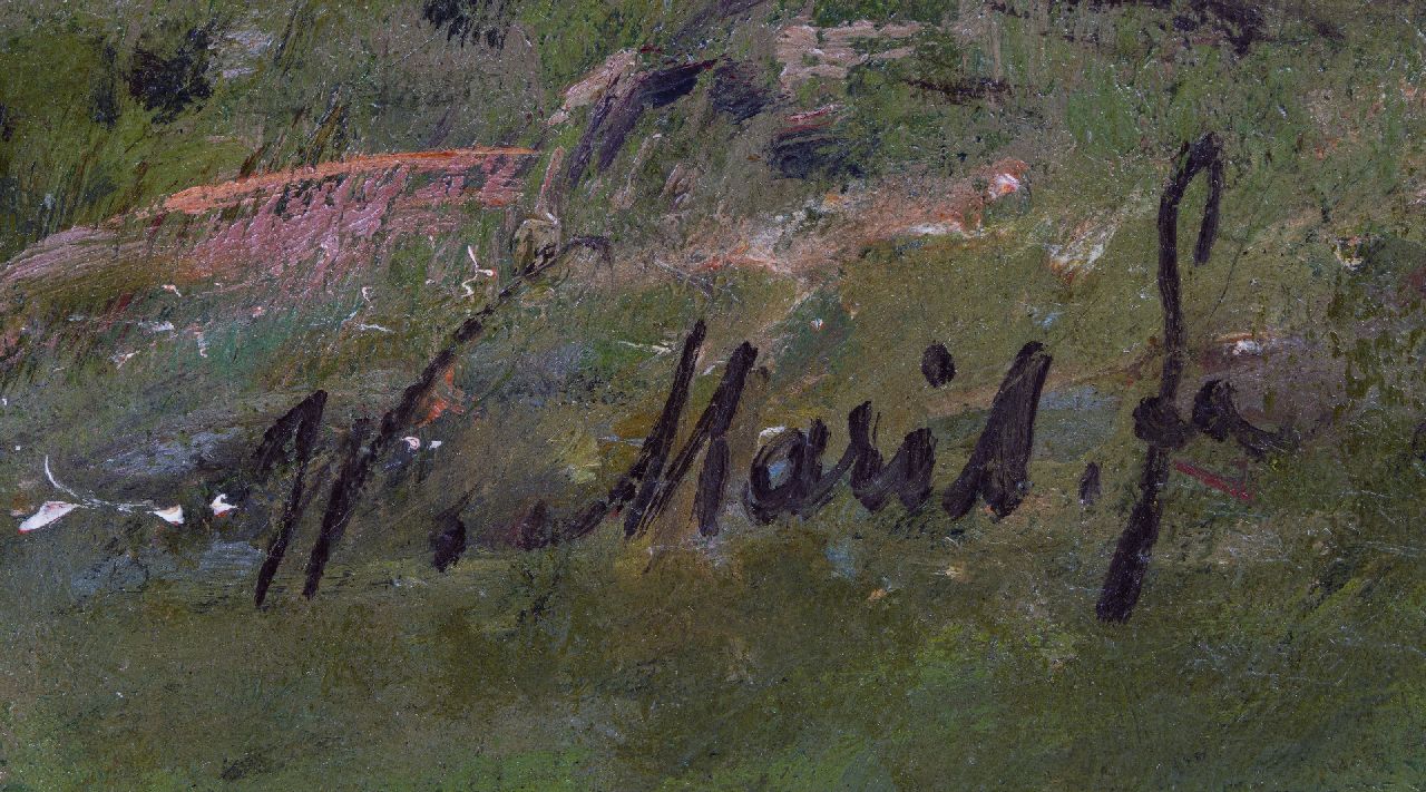 Willem Maris | Boer met praam in weidelandschap, olieverf op doek, 66,3 x 94,5 cm, te dateren ca. 1906