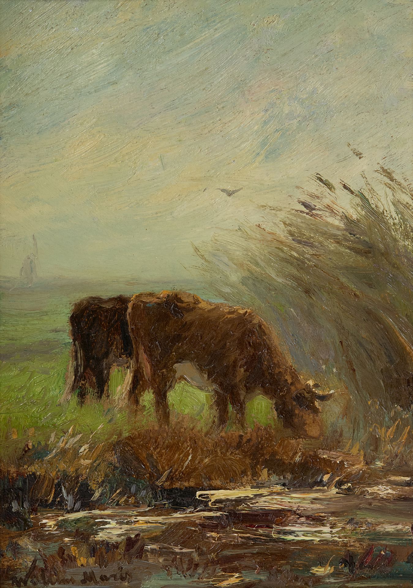 Willem Maris kunstwerk • schilderij • voorheen te koop Grazende koeien langs een sloot