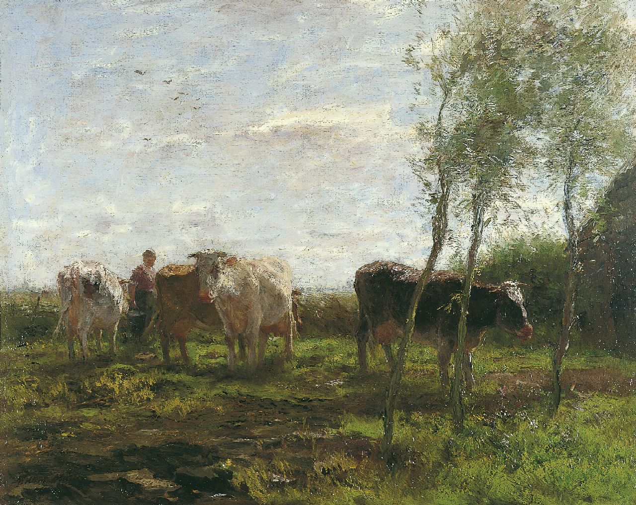 Willem Maris kunstwerk • schilderij • voorheen te koop Melktijd