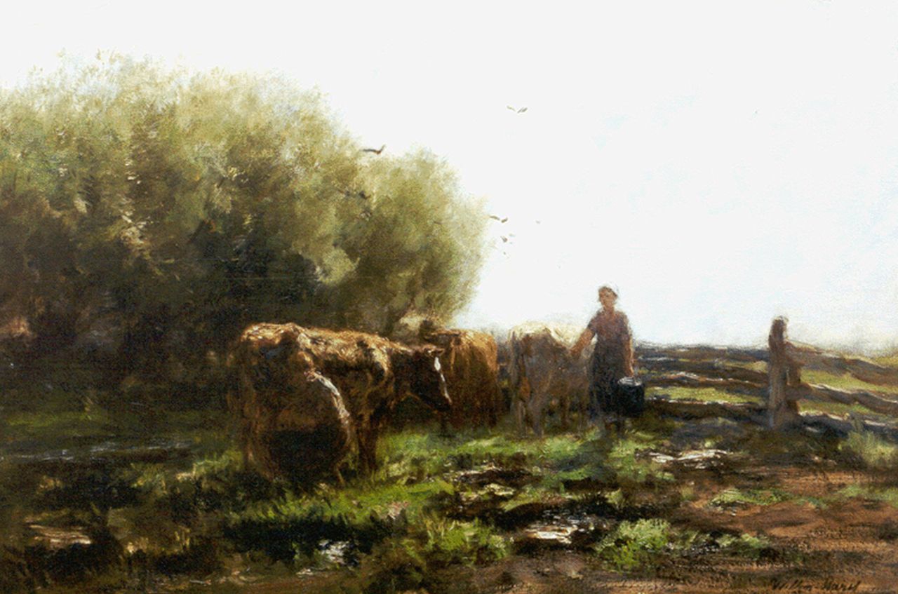 Willem Maris kunstwerk • schilderij • voorheen te koop Melktijd