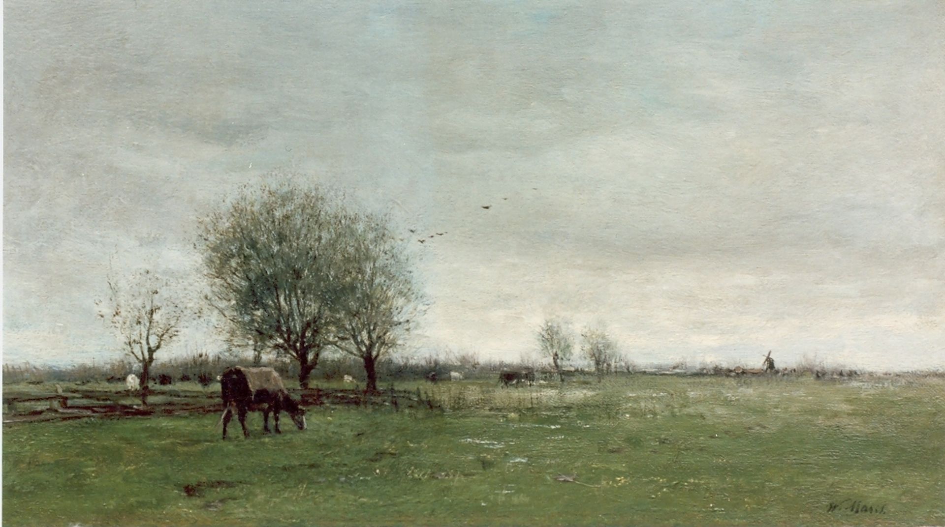 Willem Maris kunstwerk • schilderij • voorheen te koop Polderlandschap