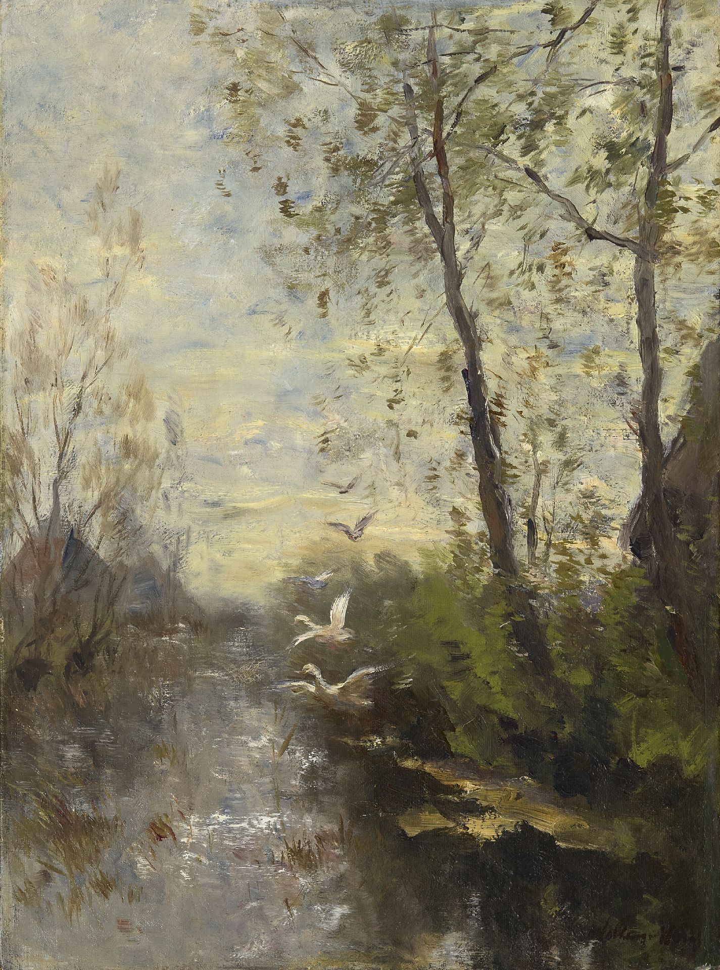 Willem Maris kunstwerk • schilderij • voorheen te koop Sloot met opvliegende eenden