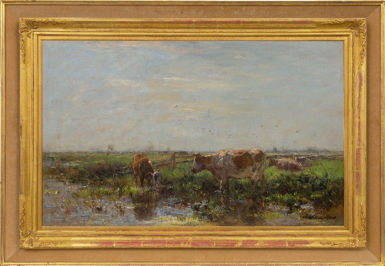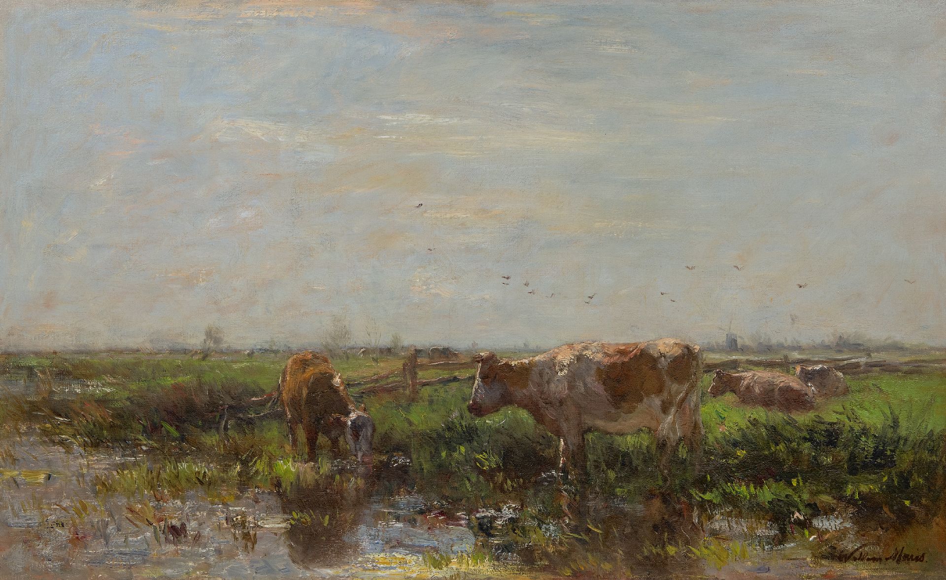 Willem Maris kunstwerk • schilderij • te koop Zomerlandschap met koeien op de rivieroever