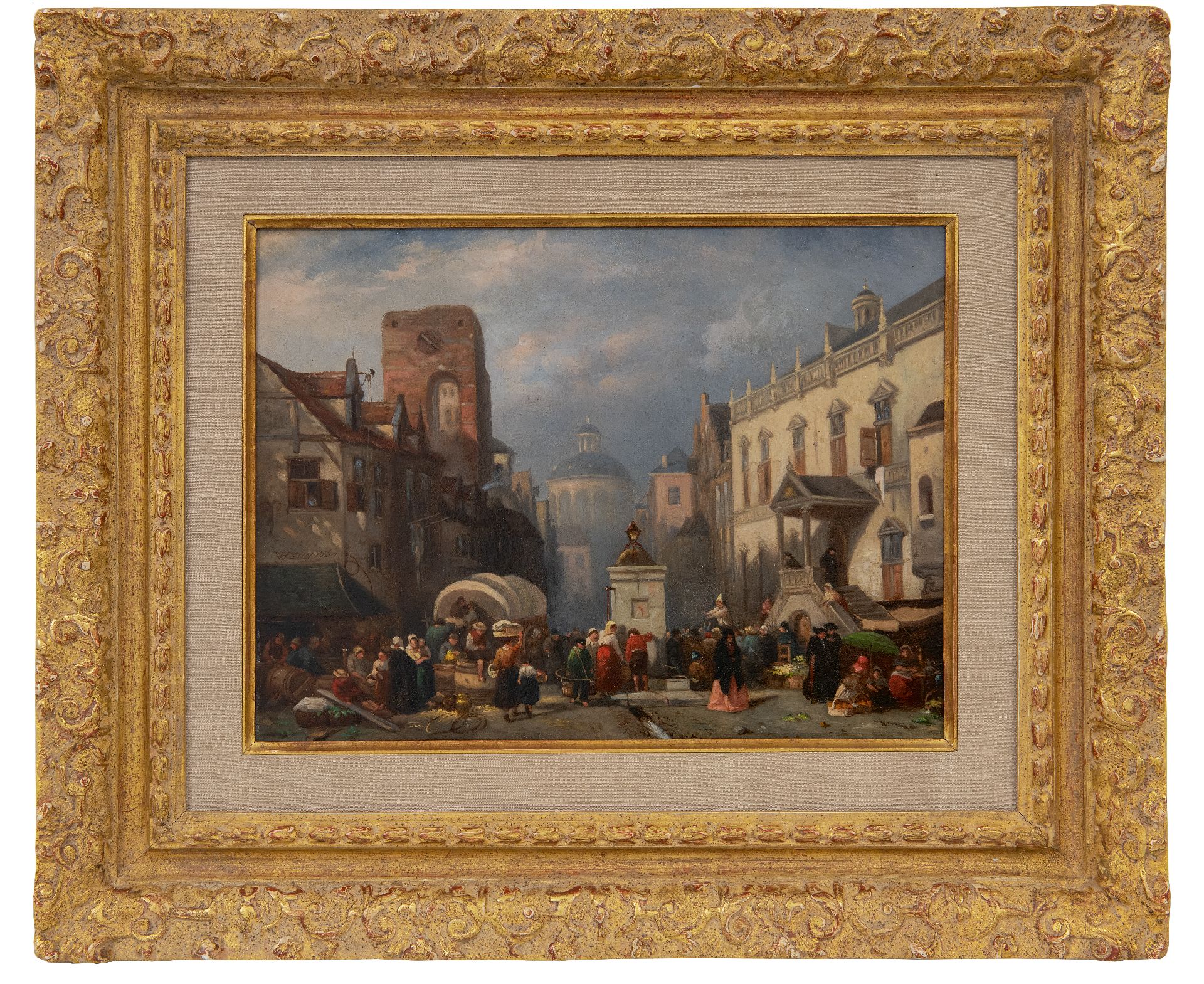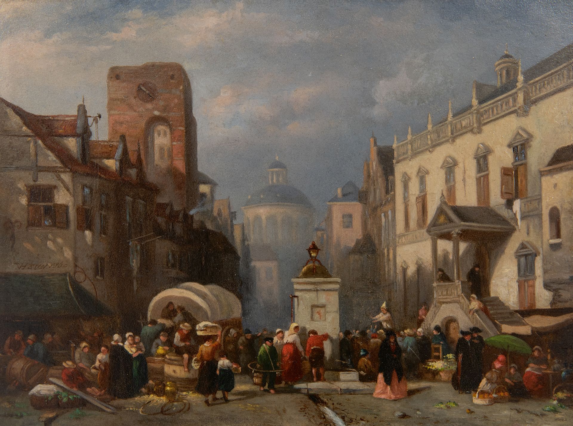 Willem Maxiliaan van Heun kunstwerk • schilderij • te koop Een drukke dag op de markt