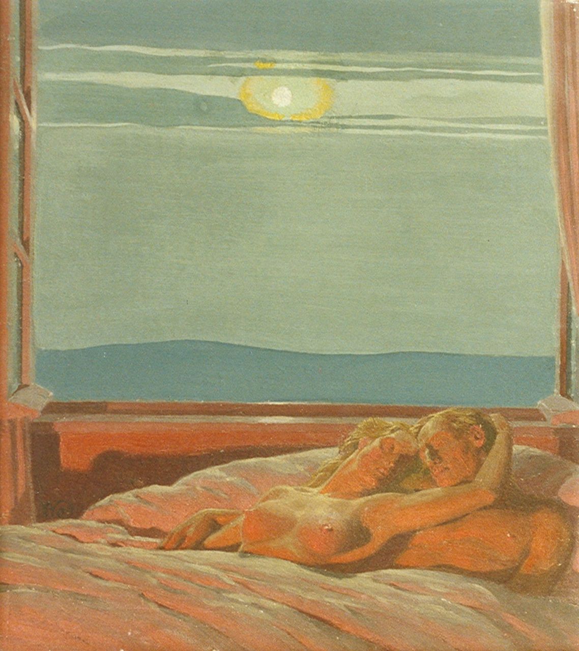 Willem Muller kunstwerk • schilderij • voorheen te koop Slapend echtpaar