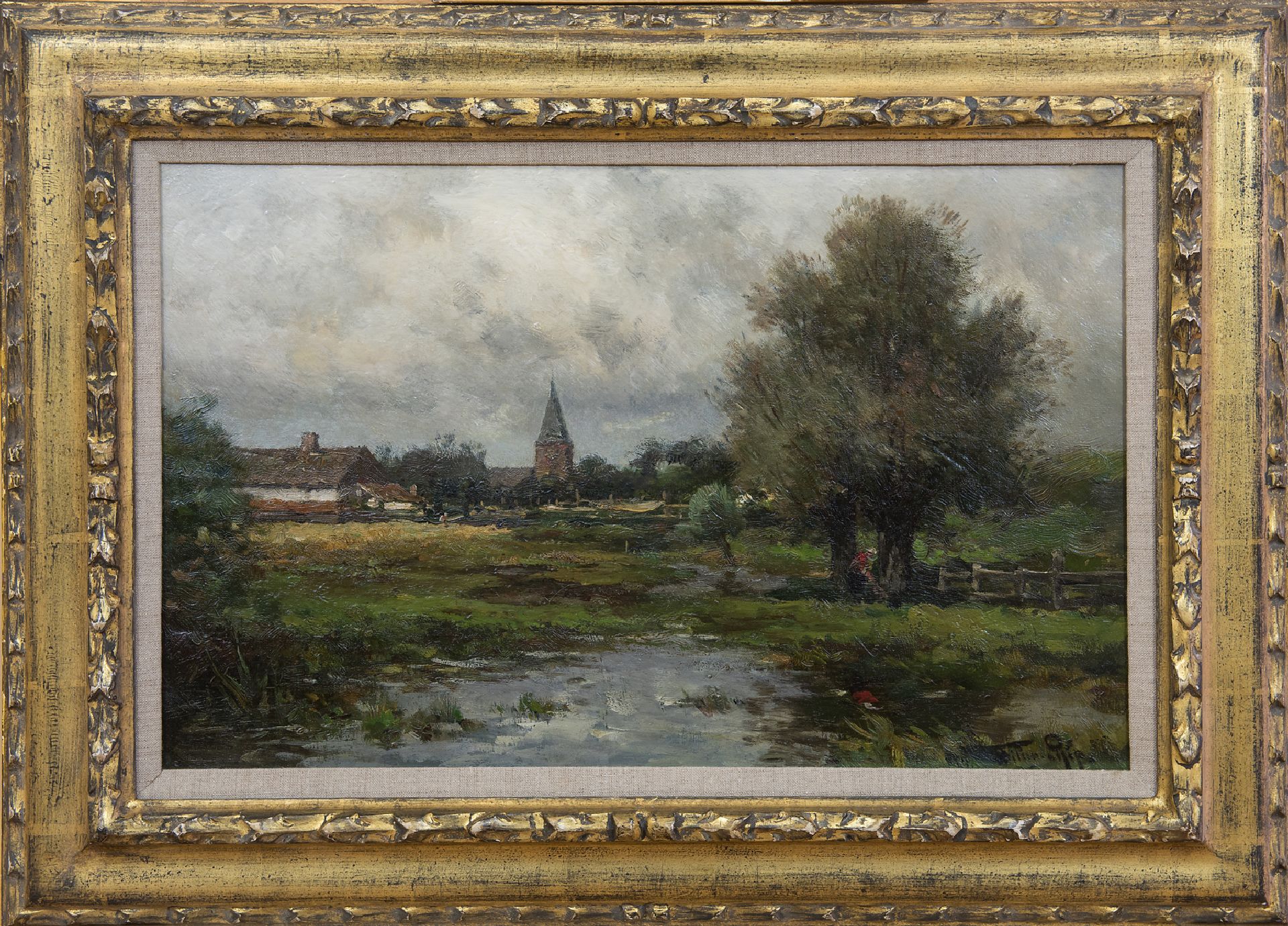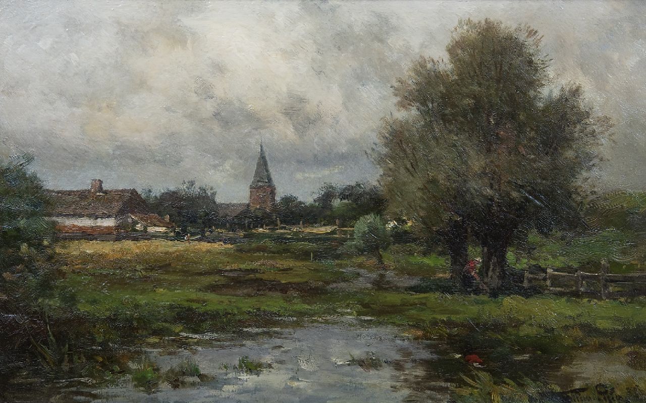 Willem Rip kunstwerk • schilderij • voorheen te koop Na den regen. Gezicht op 't dorp Neerlangel