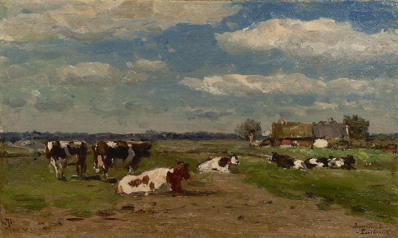 Willem Roelofs wordt wel de grote voorloper van de Haagse School genoemd. Hij schilderde bosgezichten en breed opgezette landschappen waarin hij het weidse en vlakke van het Hollandse polderlandschap met zijn water en koeien raak weet te treffen. Onder invloed van de Franse School van Barbizon trok hij er regelmatig op uit om in de natuur te schilderen. Zo kon hij in een losse toets het steeds wisselende effect van licht en schaduw op het landschap vastleggen. Een groot deel van zijn leven woonde Willem Roelofs in Brussel, maar hij kwam vaak naar Nederland om er inspiratie op te doen en te schilderen.