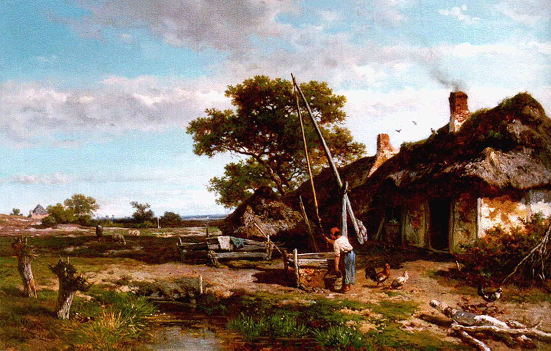 Willem Roelofs kunstwerk • schilderij • voorheen te koop Bij de put op boerenerf
