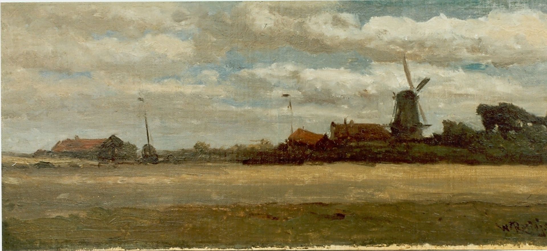 Willem Roelofs kunstwerk • schilderij • voorheen te koop Dorpje aan een vaart