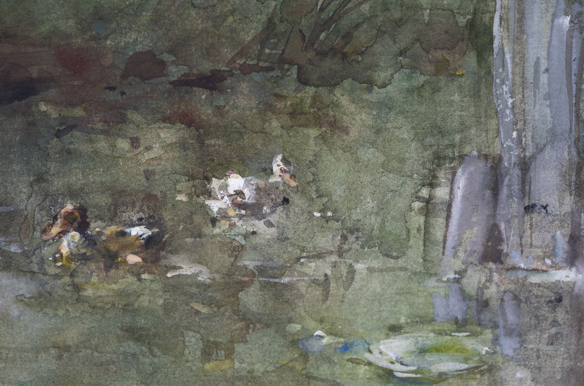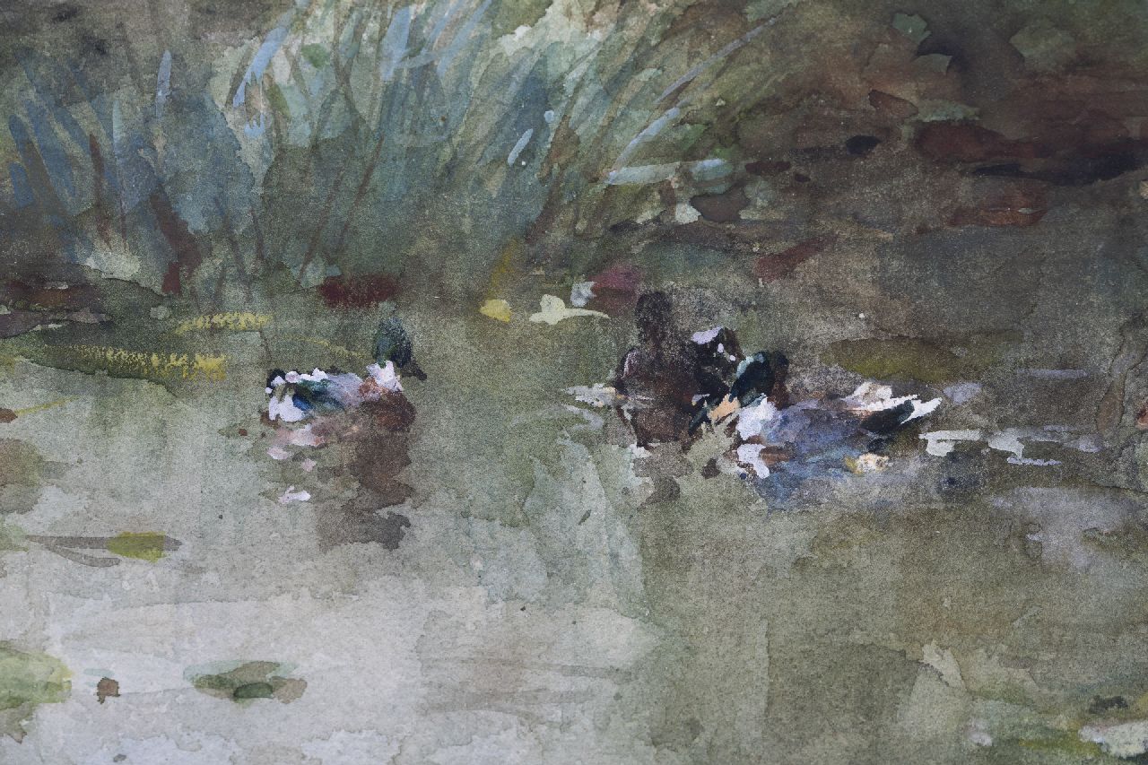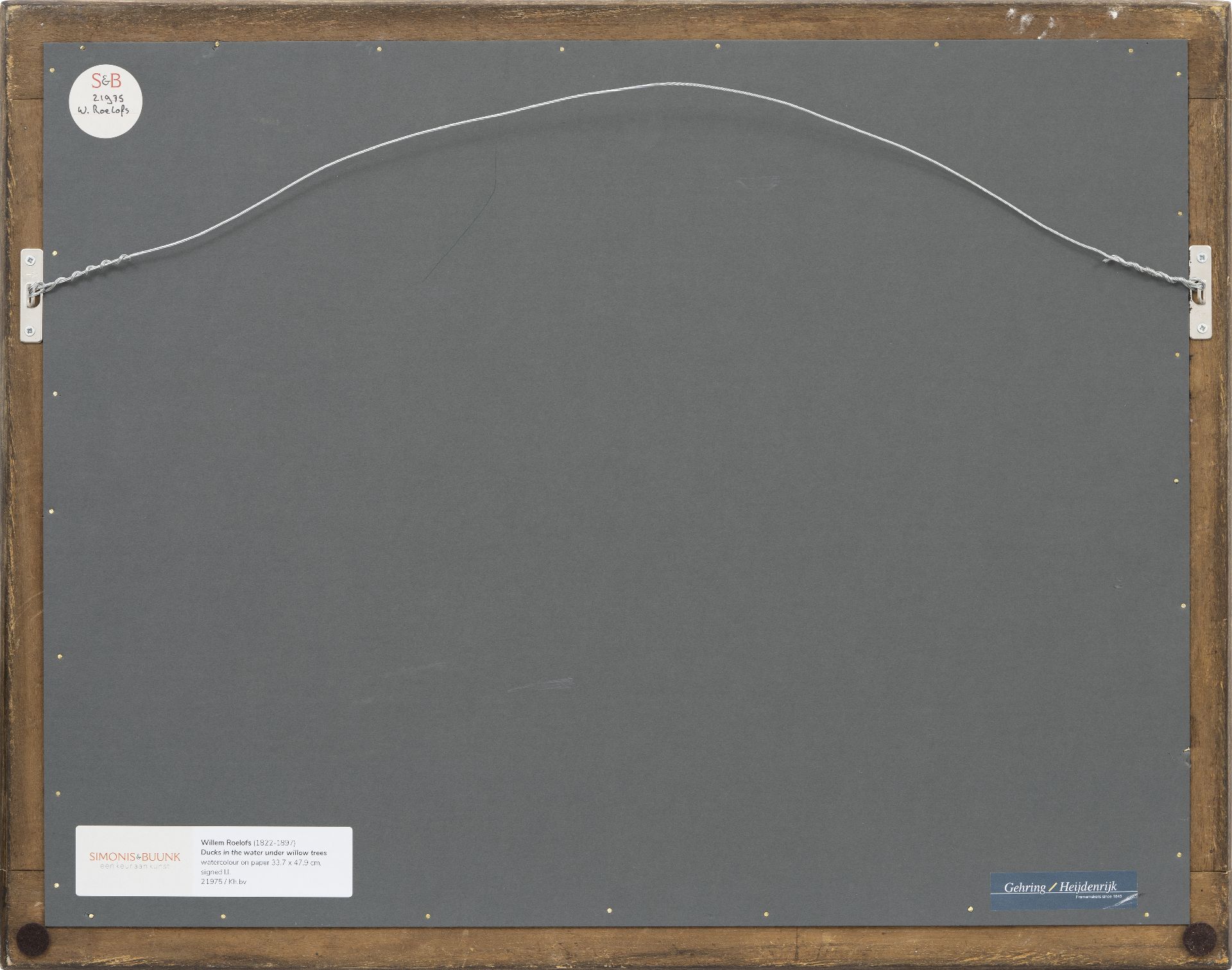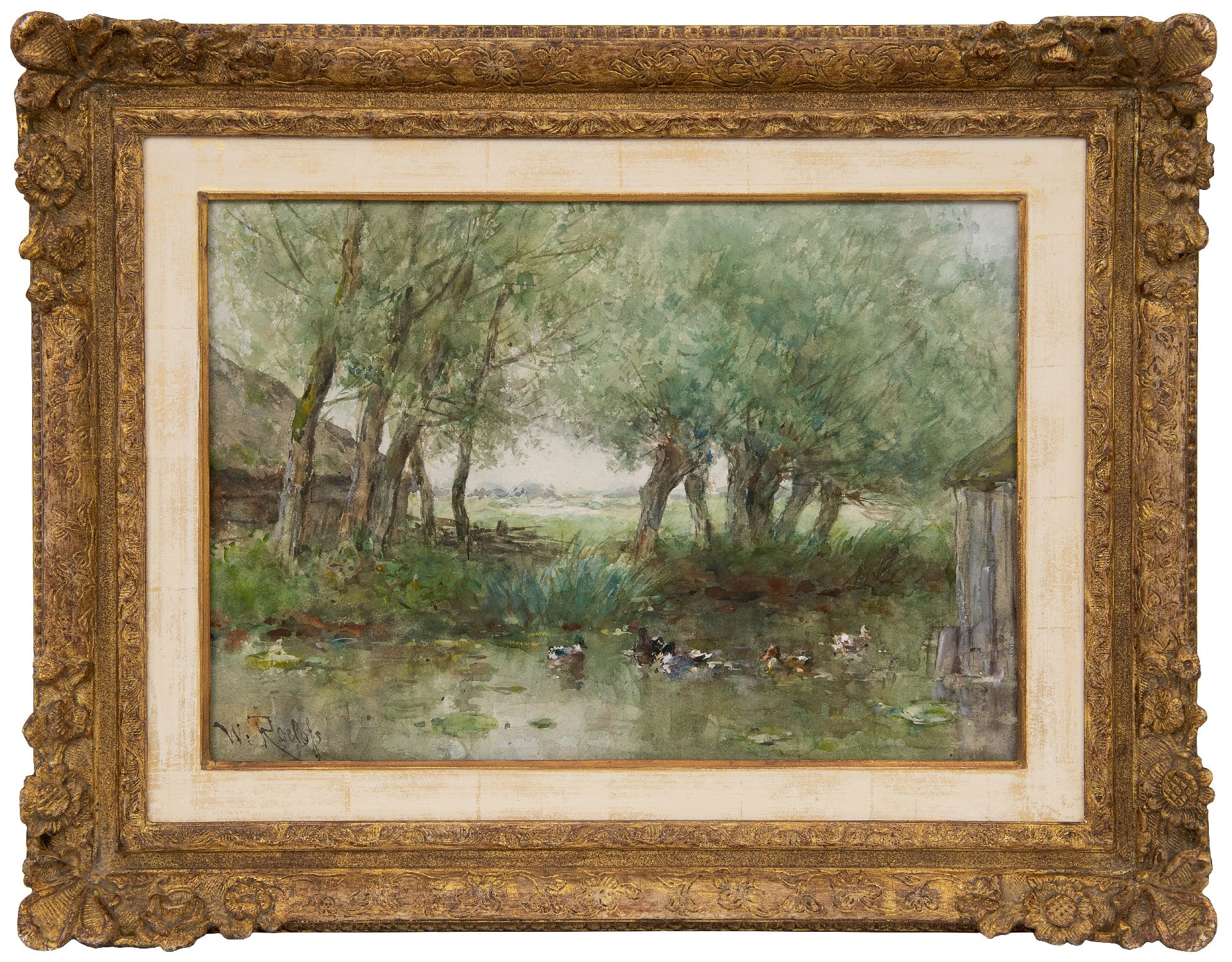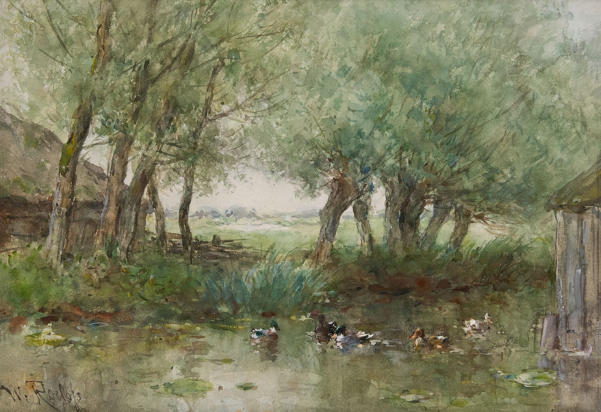 Willem Roelofs kunstwerk • aquarel • tekening • voorheen te koop Eenden in een sloot onder de wilgen
