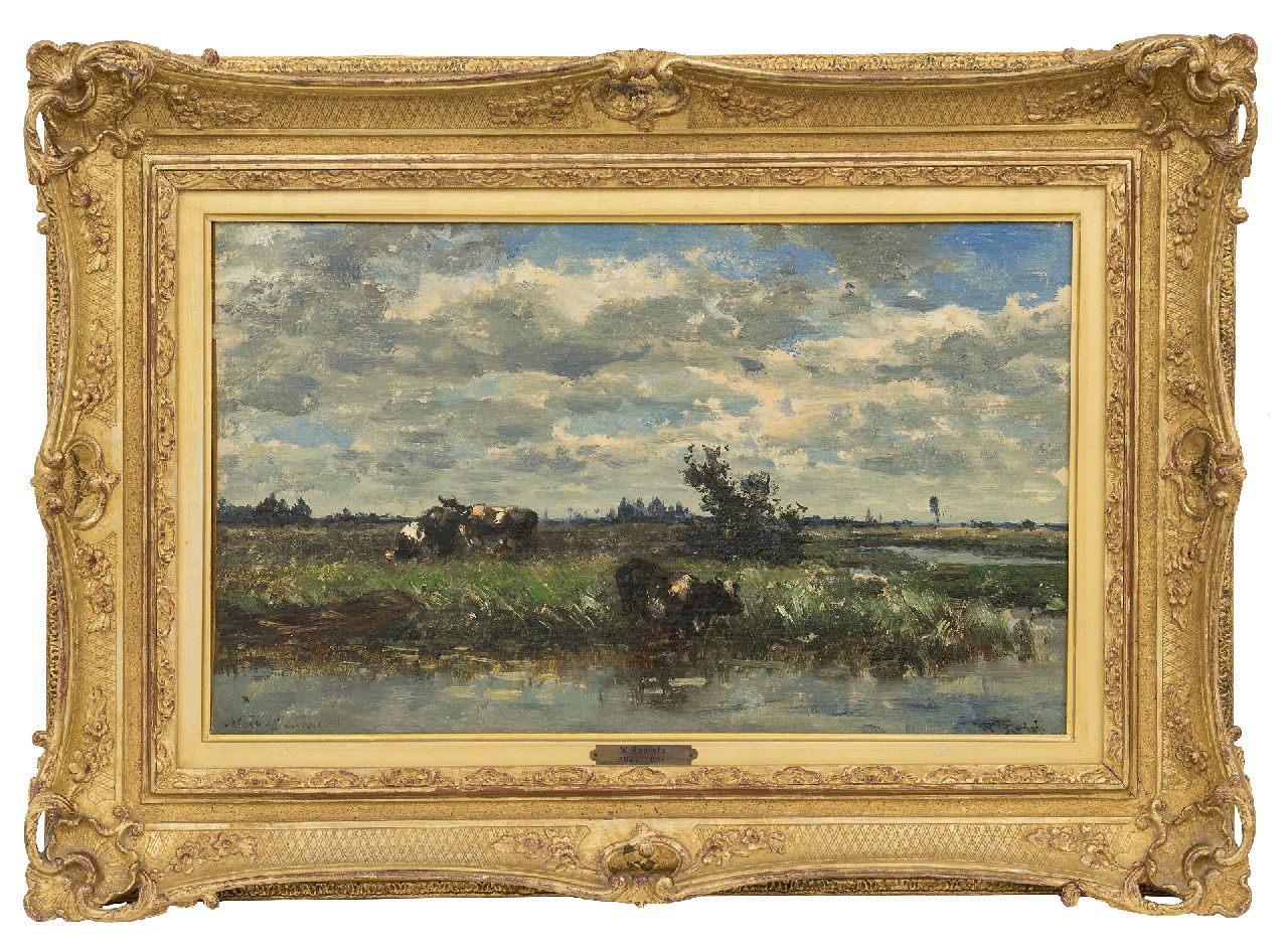 Willem Roelofs kunstwerk • schilderij • voorheen te koop Koeien aan een plas, Loosdrecht