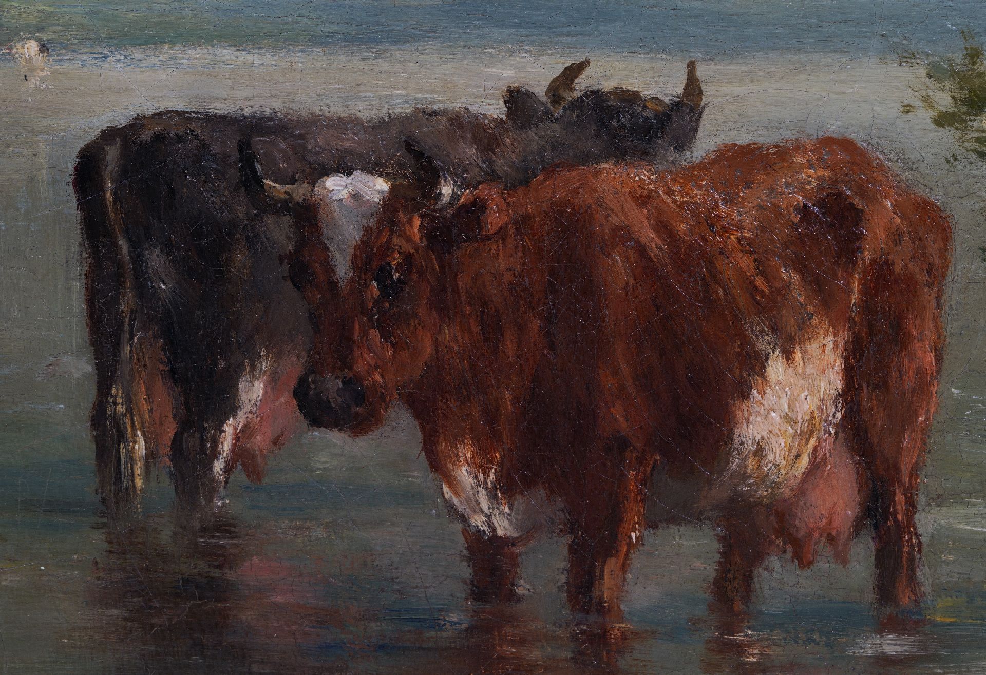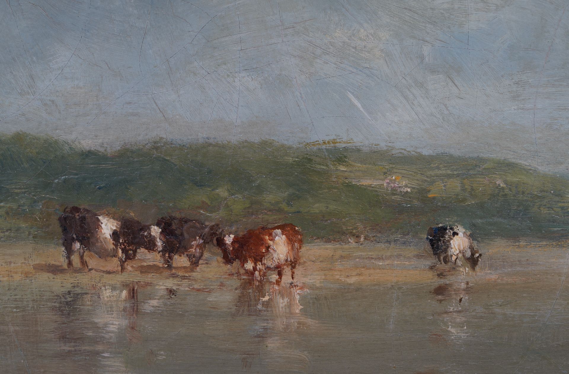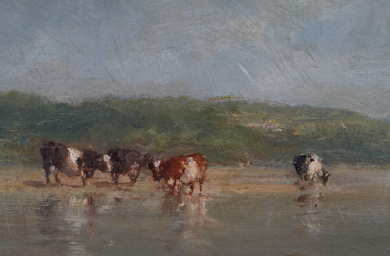 Willem Roelofs kunstwerk • schilderij • voorheen te koop Rivierlandschap met drinkende koeien