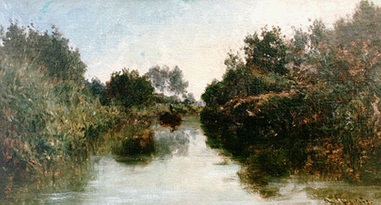 Willem Roelofs | Rietsnijder aan 't Gein, olieverf op doek, 32,4 x 44,1 cm, gesigneerd l.o.