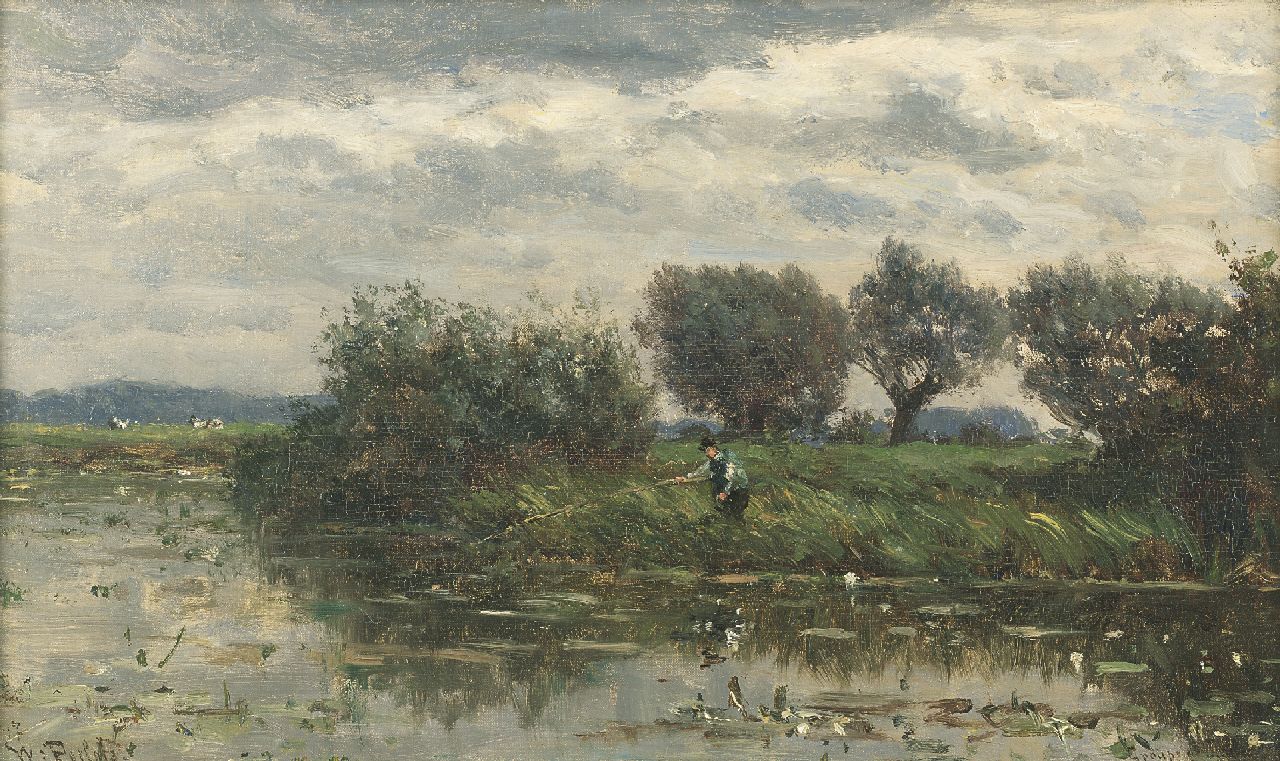 Willem Roelofs kunstwerk • schilderij • voorheen te koop Wilgen aan de waterkant, Loosdrecht