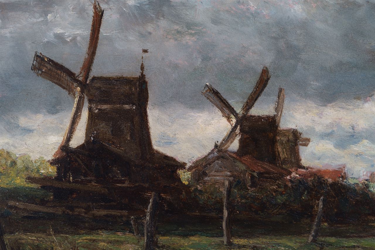 Willem Roelofs kunstwerk • schilderij • voorheen te koop Zaagmolens langs de Noordendijk bij Dordrecht.