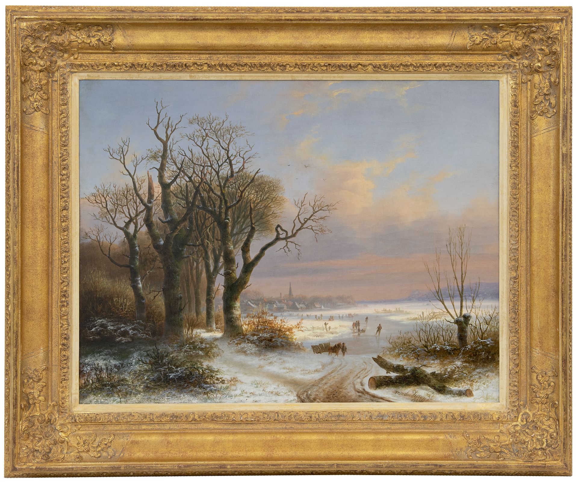 Willem Simon Petrus van der Vijver kunstwerk • schilderij • te koop Winterlandschap met schaatsers bij een dorp