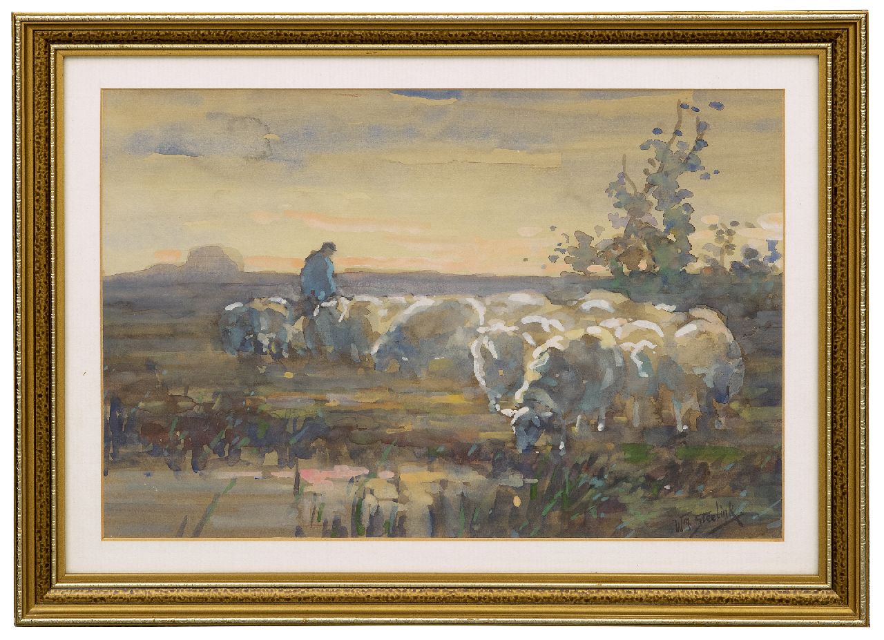 Willem Steelink jr. kunstwerk • aquarel • tekening • te koop Herder met schapen