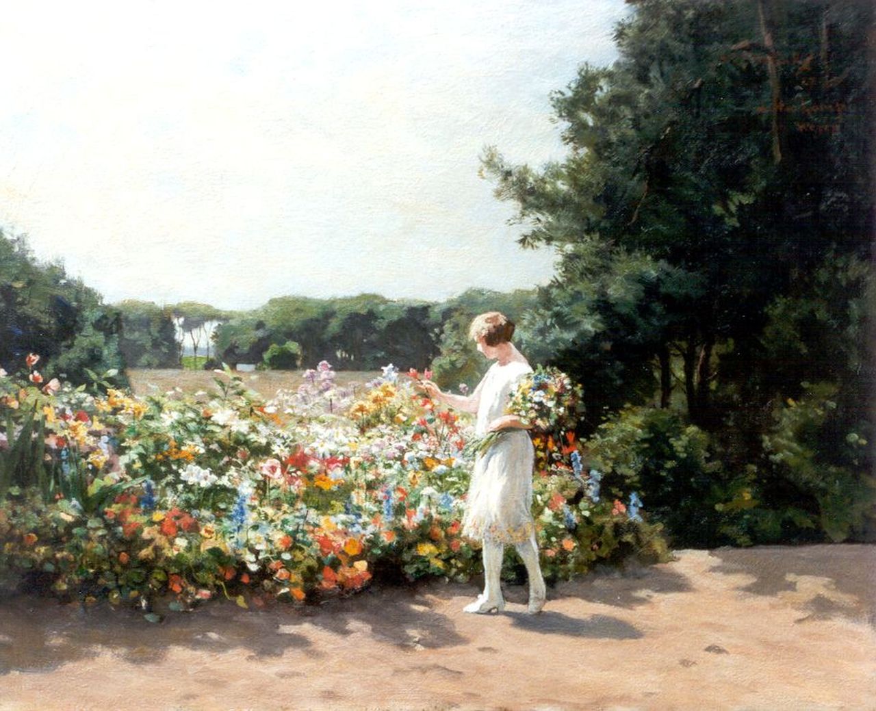 annotatie: 'de Heikamp Wezep' Het bloemenplukkende meisje is de kleindochter van de kunstenaar, J.M.L. Wijtman op 16 jarige leeftijd