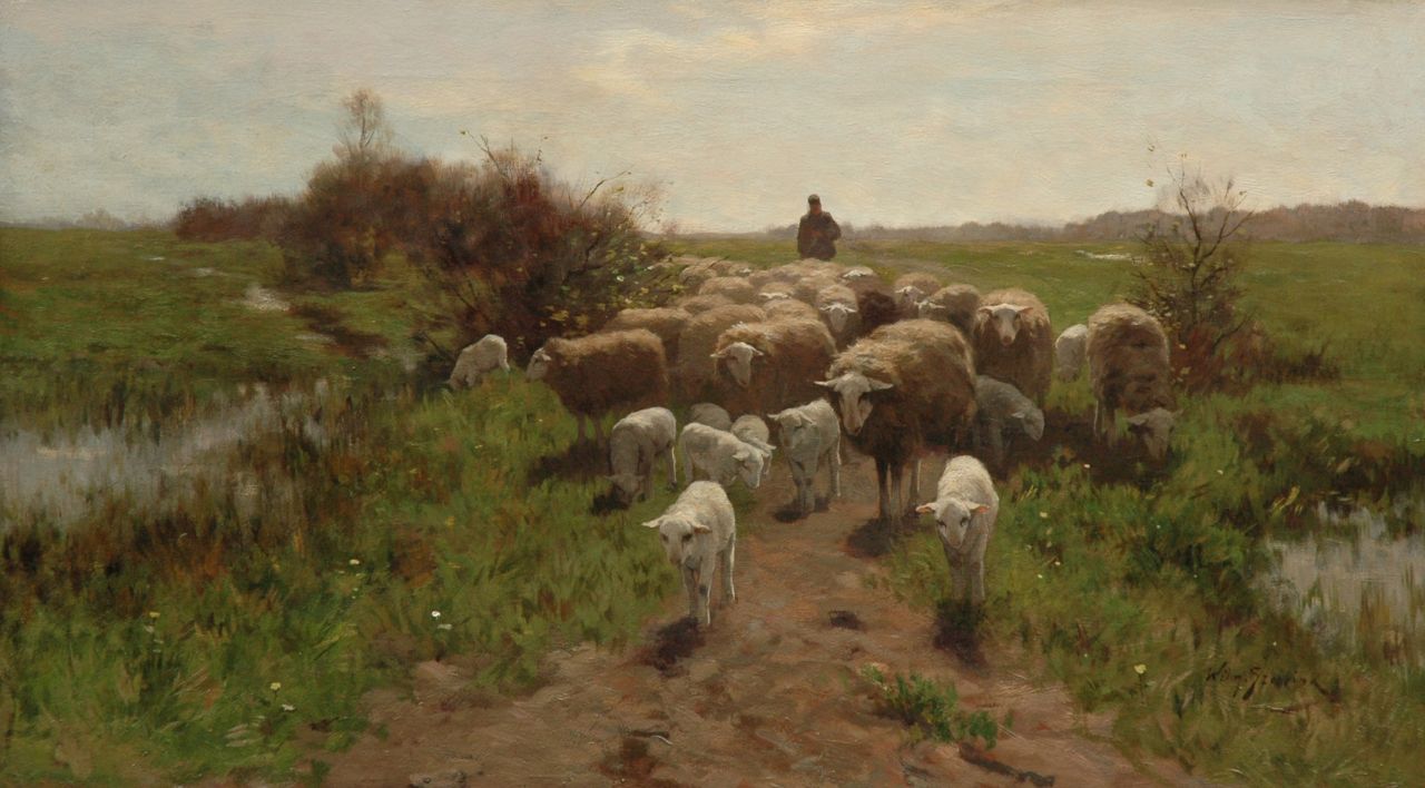 Willem Steelink jr. kunstwerk • schilderij • voorheen te koop Herder met schaapskudde op de hei