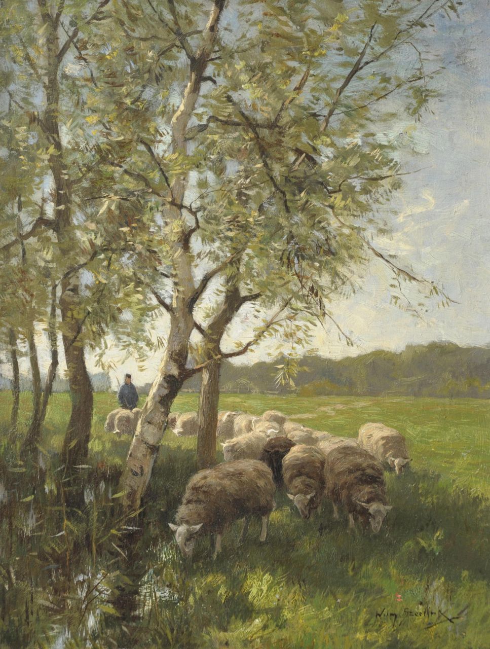 Willem Steelink jr. kunstwerk • schilderij • voorheen te koop Herder met zijn kudde