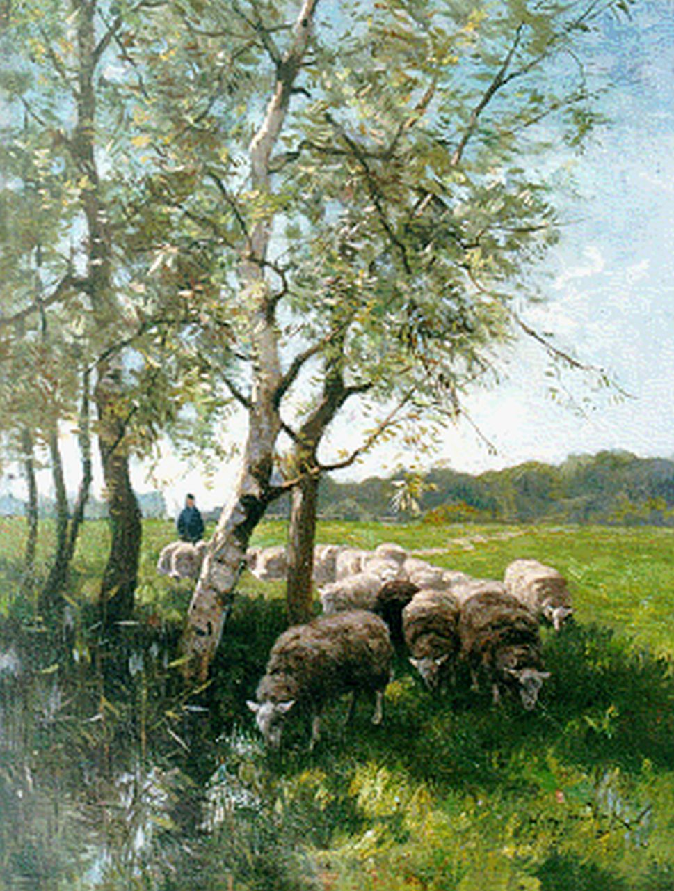 Willem Steelink jr. kunstwerk • schilderij • voorheen te koop Herder met zijn kudde