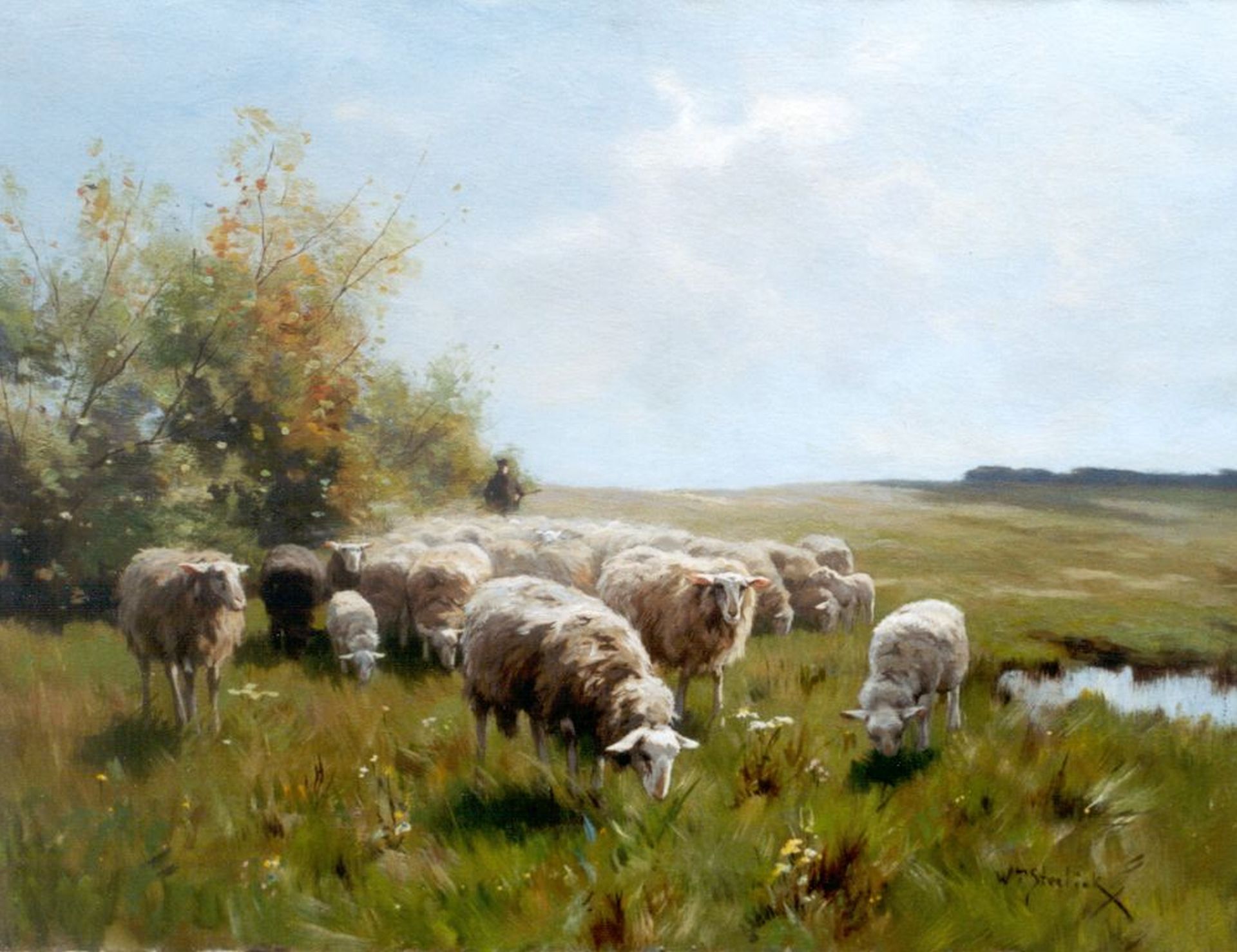 Willem Steelink jr. kunstwerk • schilderij • voorheen te koop Schaapskudde met herder