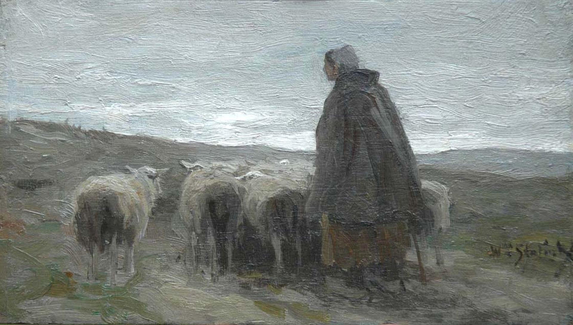 Willem Steelink jr. kunstwerk • schilderij • voorheen te koop Schaapskudde met herderin (alleen tezamen met 10142)