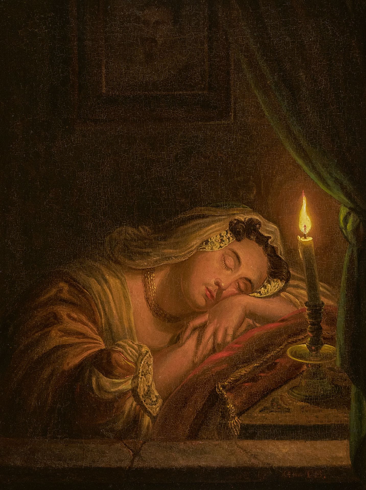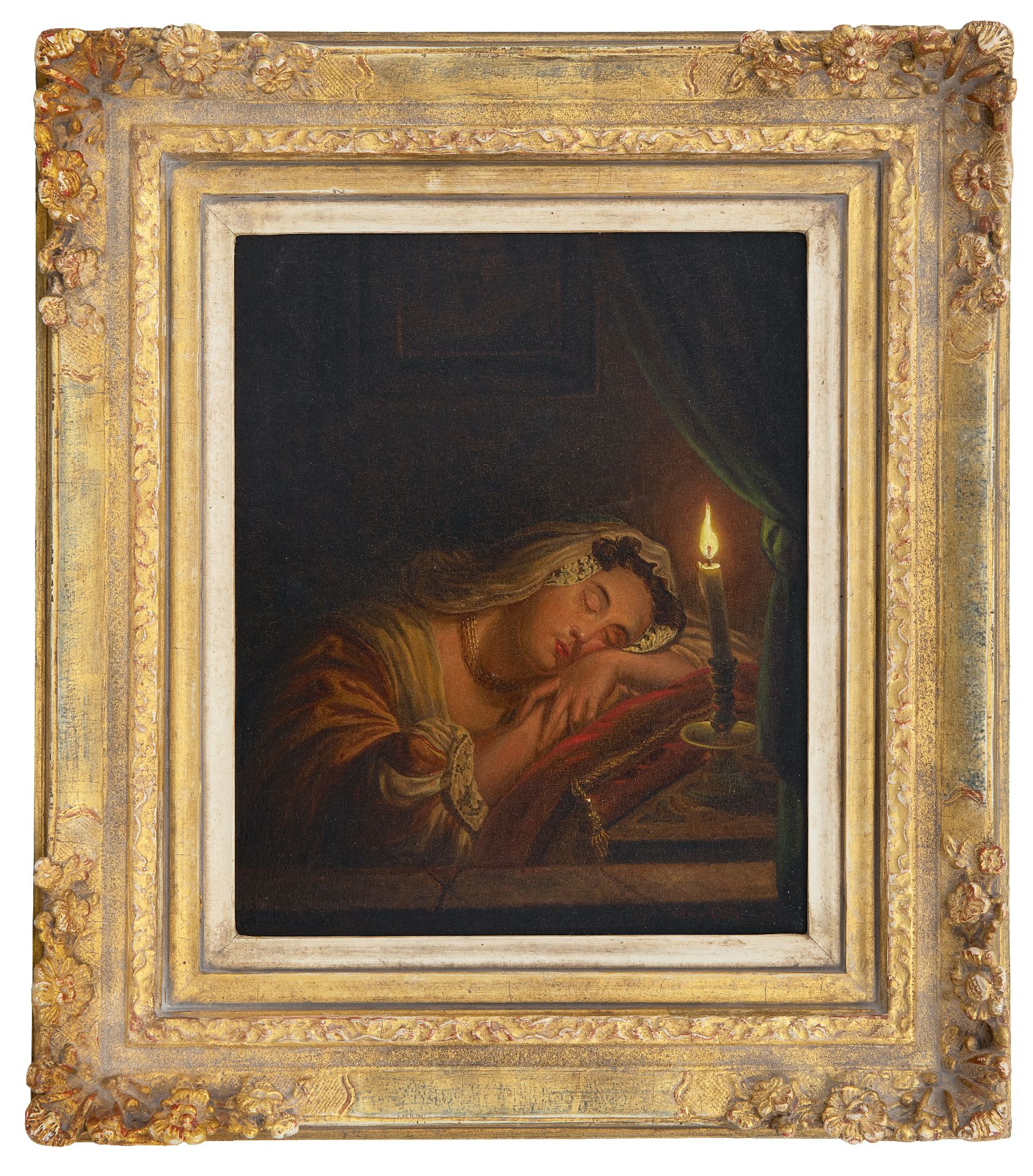 Willem Thans kunstwerk • schilderij • te koop Slapende vrouw bij kaarslicht