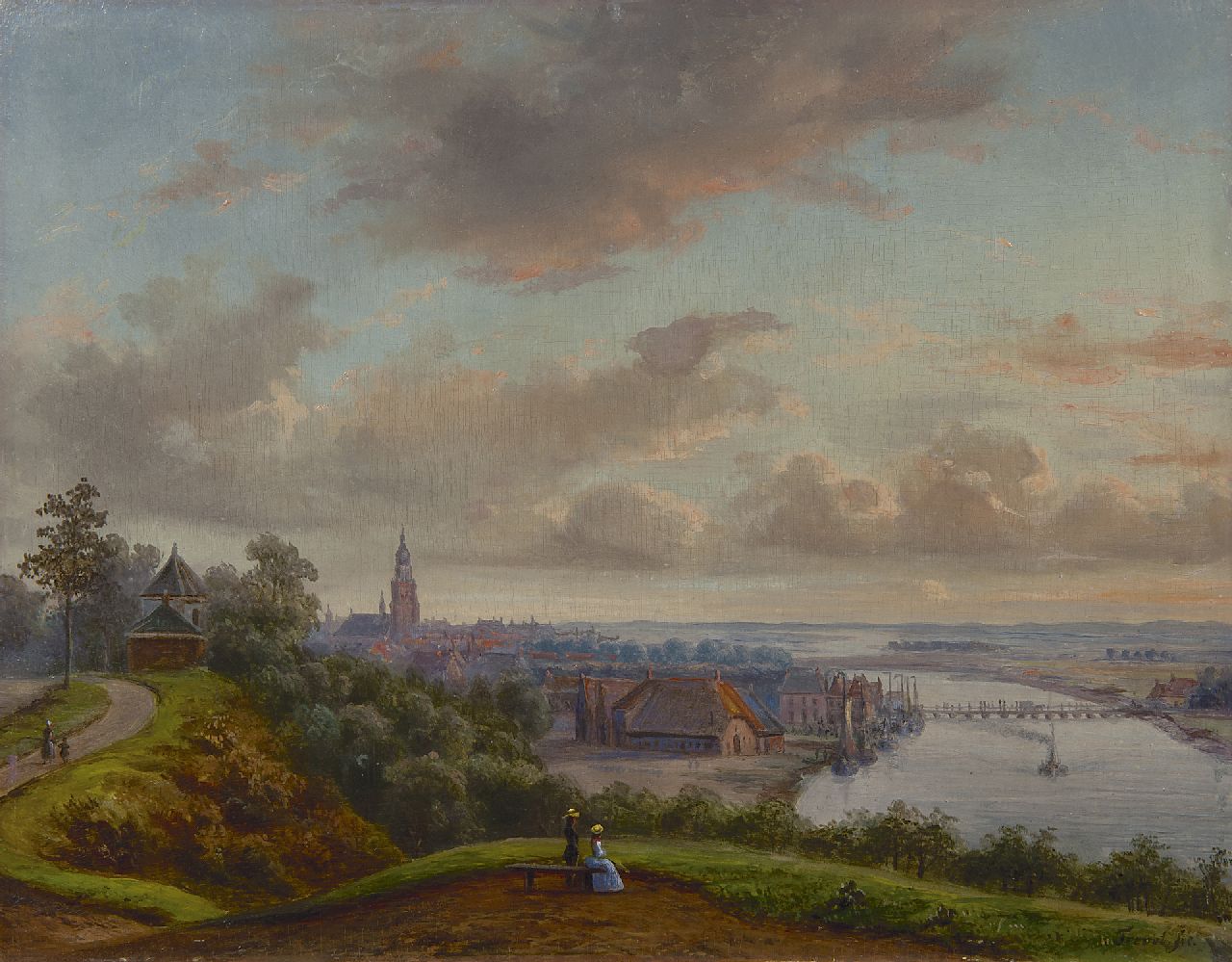 Willem Troost kunstwerk • schilderij • voorheen te koop Gezicht op de Rijn en Arnhem vanaf Bovenover