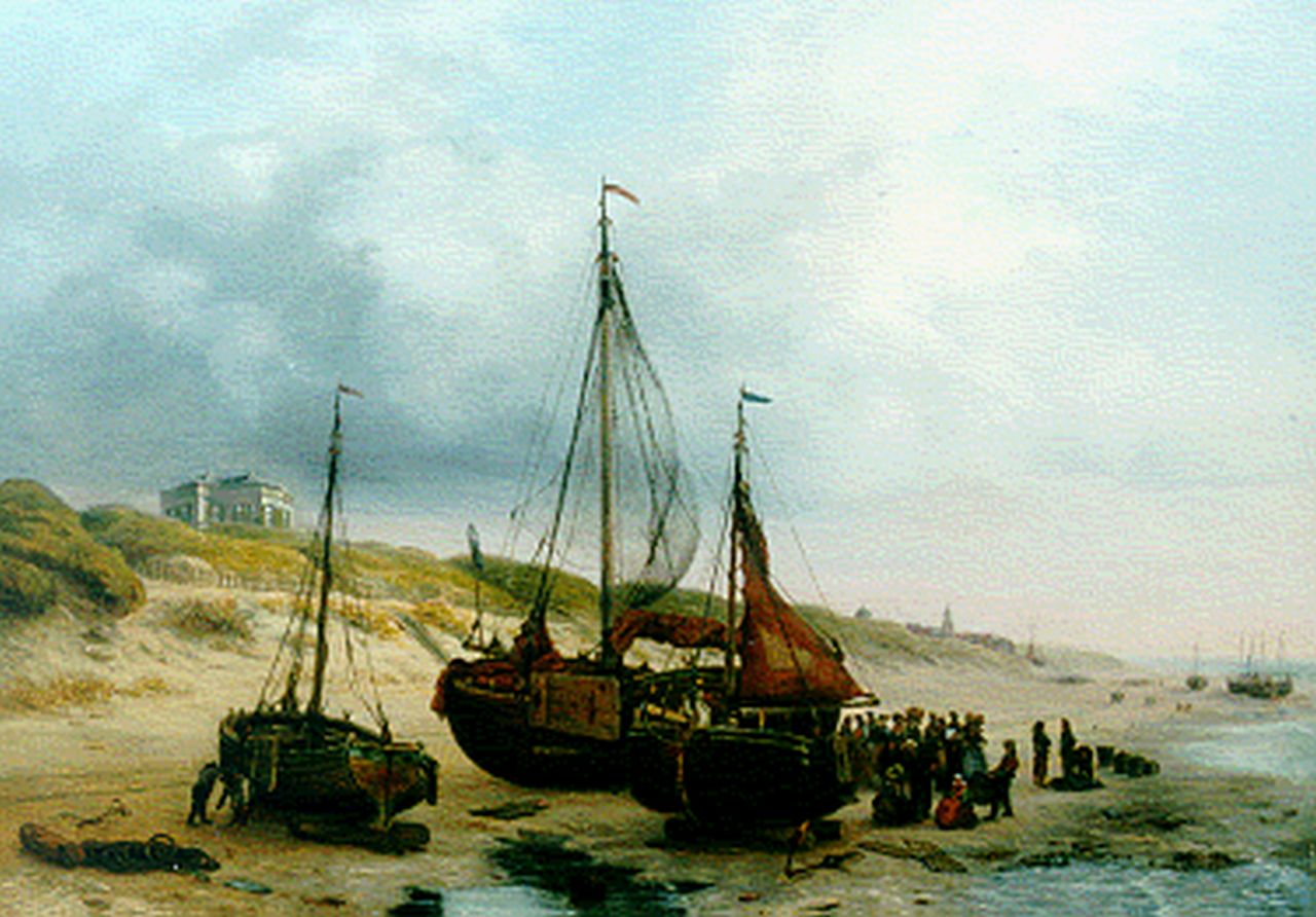 Willem Troost kunstwerk • schilderij • voorheen te koop Visafslag op het strand van Scheveningen
