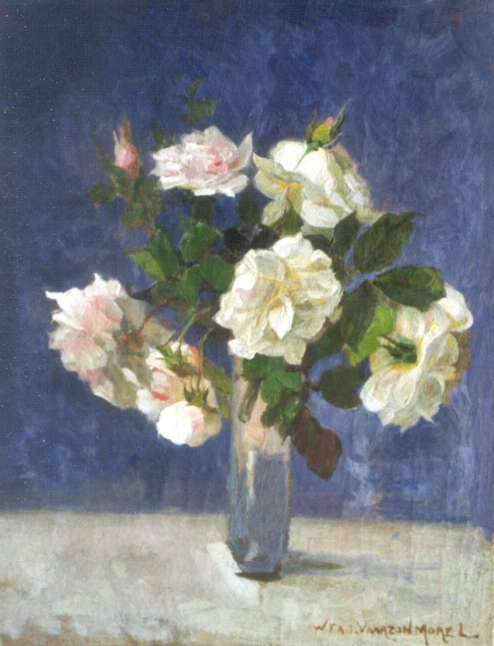 Willem Vaarzon Morel kunstwerk • schilderij • voorheen te koop Rozen in een glazen vaas