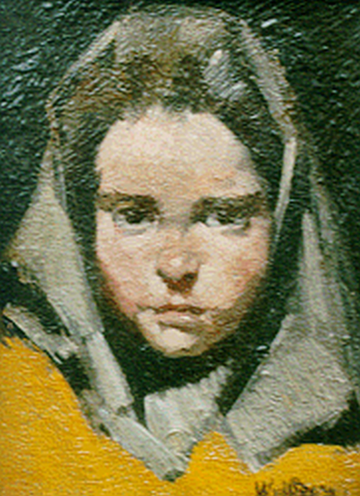 Willem van den Berg kunstwerk • schilderij • voorheen te koop Meisje met hoofddoek