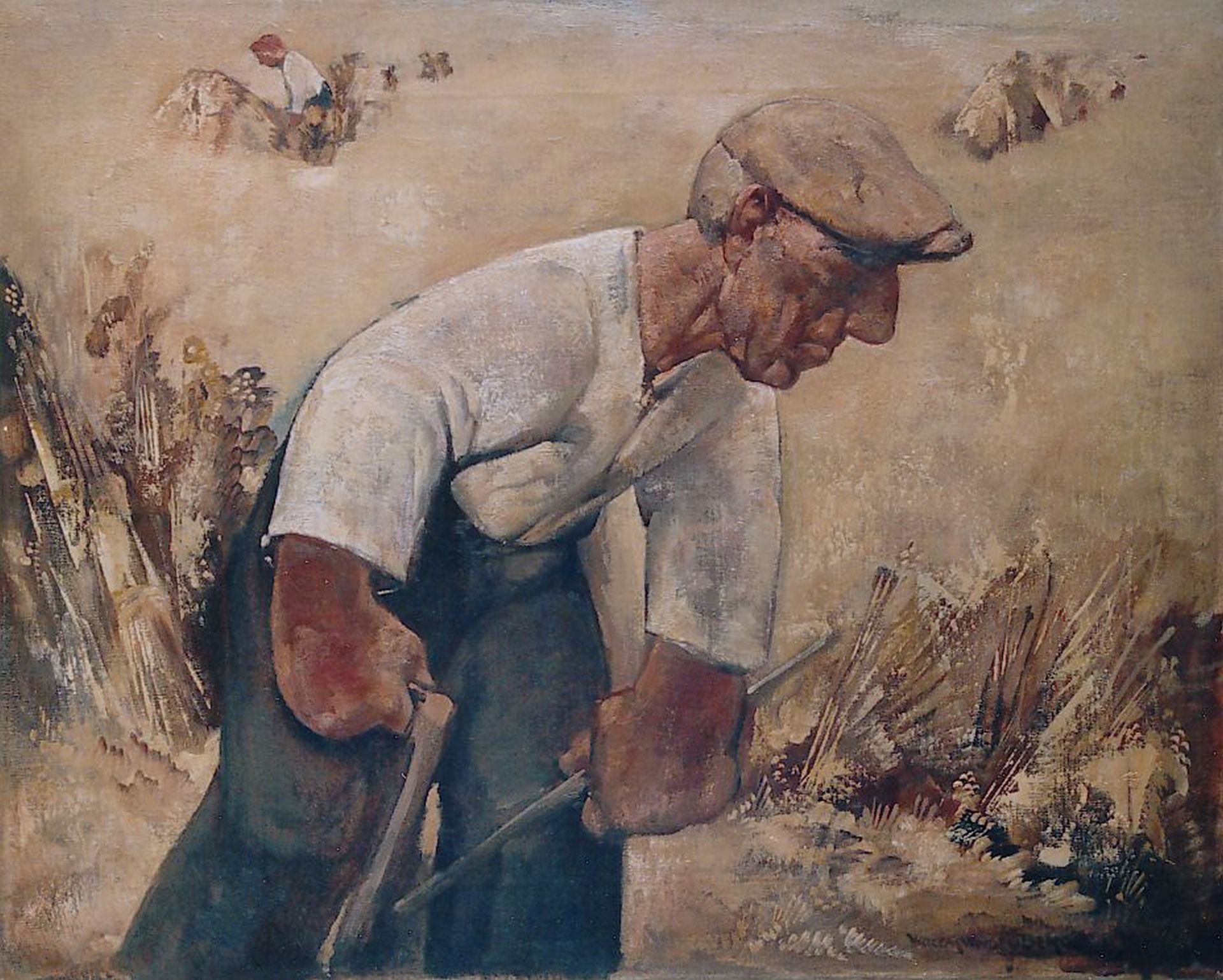 Willem van den Berg kunstwerk • schilderij • voorheen te koop Oogstende boer
