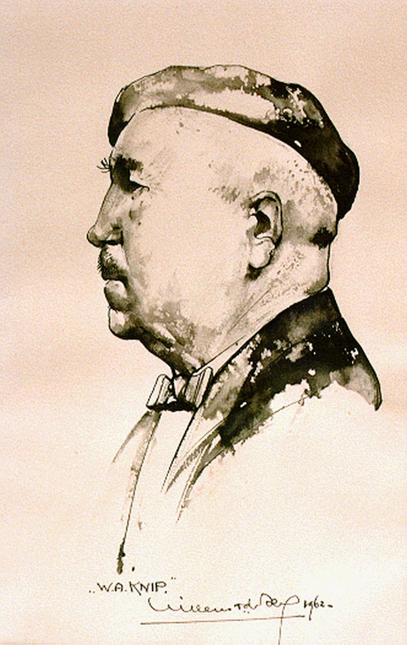 Willem van den Berg kunstwerk • aquarel • tekening • voorheen te koop Portret W.A. Knip