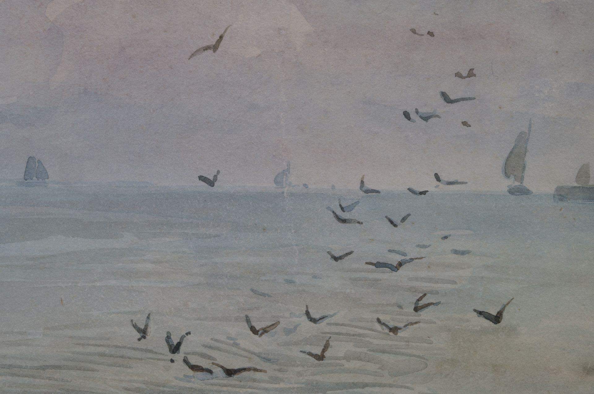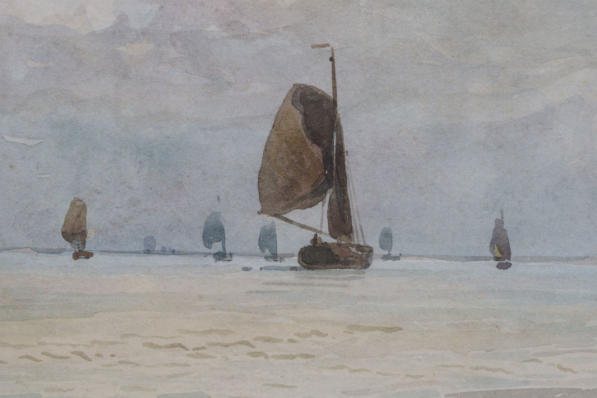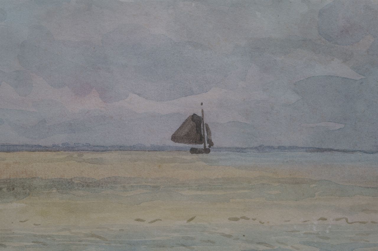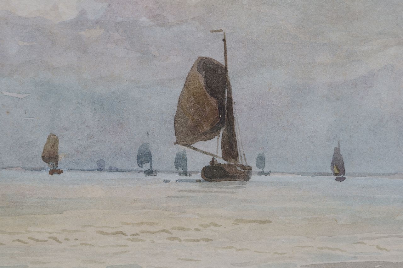 Willem van Deventer kunstwerk • aquarel • tekening • te koop Schepen op kalme zee