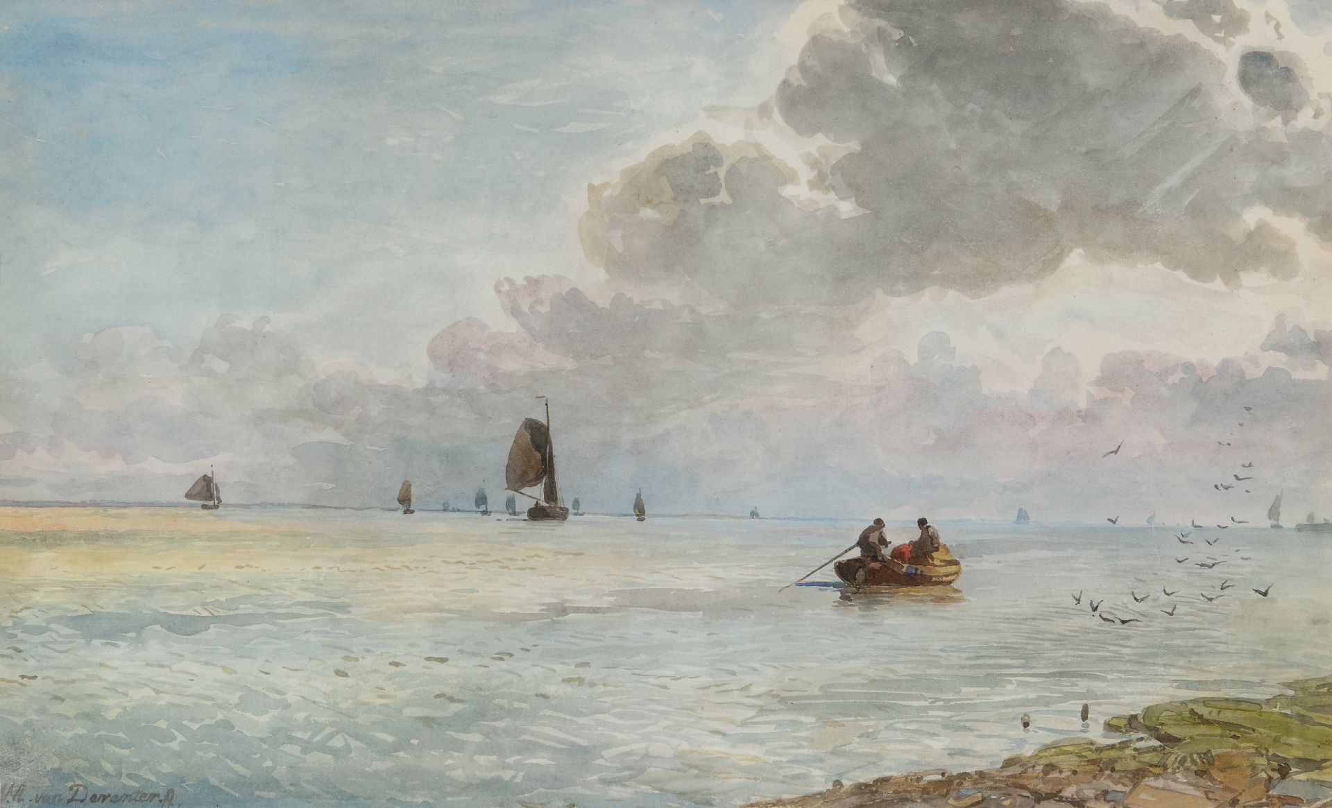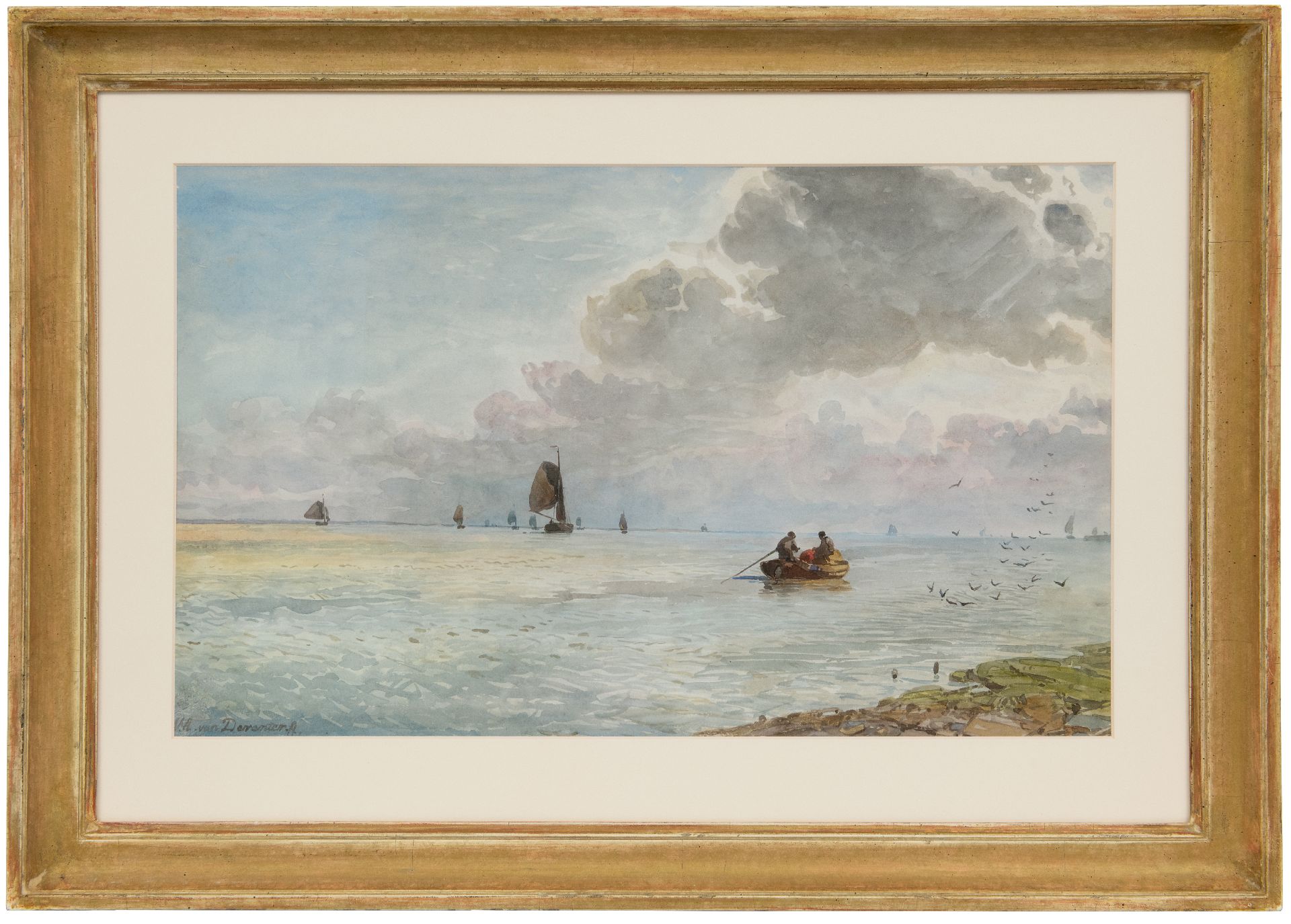 Willem van Deventer kreeg zijn eerste schilderlessen van zijn oom Hendrikus van de Sande Bakhuyzen. Daarna bezocht hij van 1843 tot 1846 de Haagse Tekenacademie waar toen ook de romantische marineschilders Sam Verveer en Antonie Waldorp les gaven. Mogelijk speelden zij een rol in de keuze van de jonge schilder om zich te specialiseren in het rivier- en zeegezicht. Deze aquarel komt vermoedelijk uit de collectie van Willem III. Hij verzamelde actief aquarellen van (Haagse) tijdgenoten en bekend is dat hij ook werk kocht van W.A. Van Deventer.