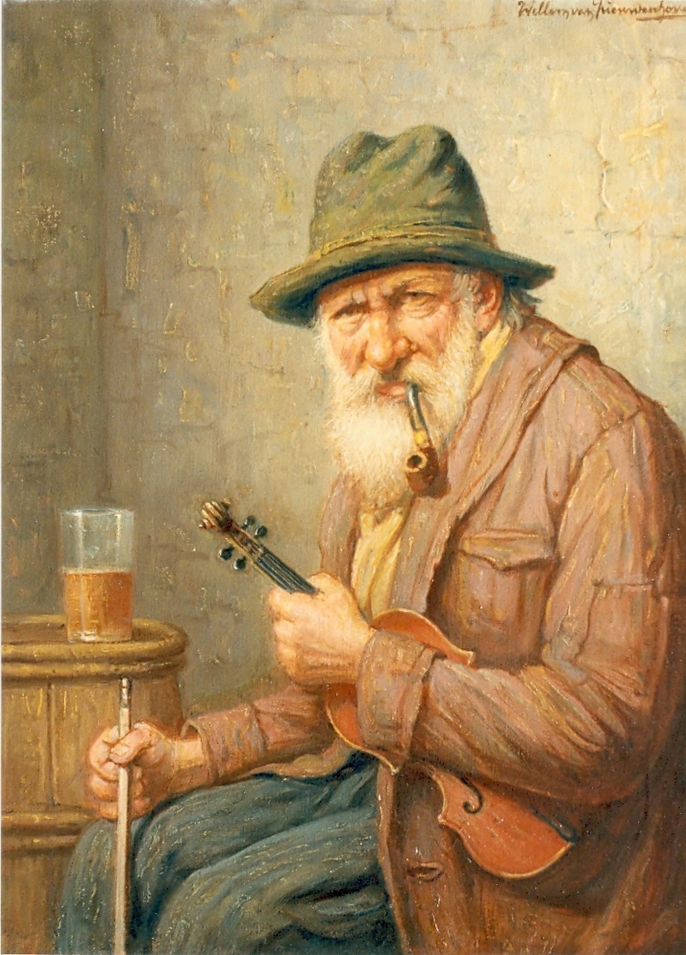 Willem van Nieuwenhoven kunstwerk • schilderij • voorheen te koop Man met viool en pijp