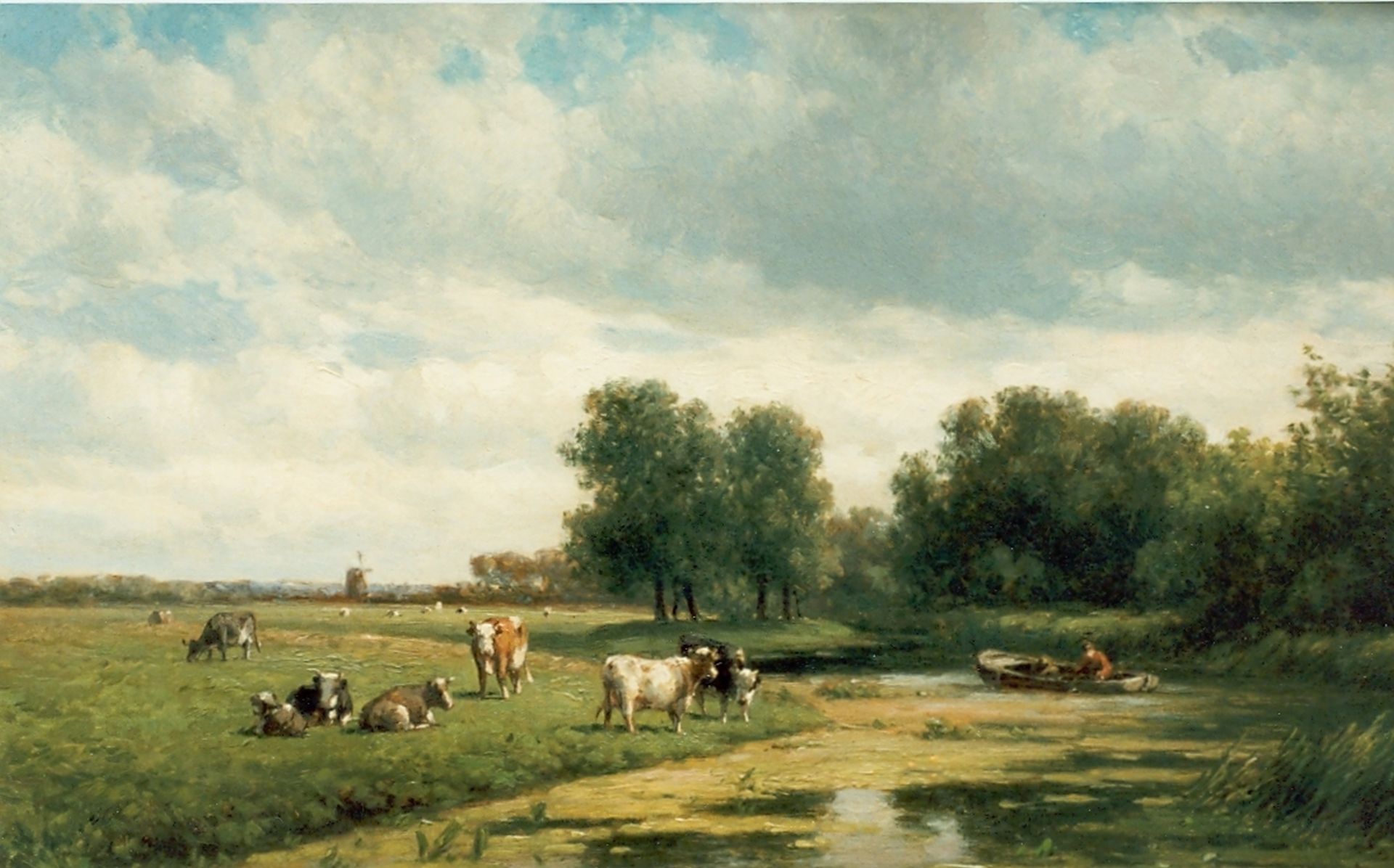 Willem Vester kunstwerk • schilderij • voorheen te koop Polderlandschap met koeien