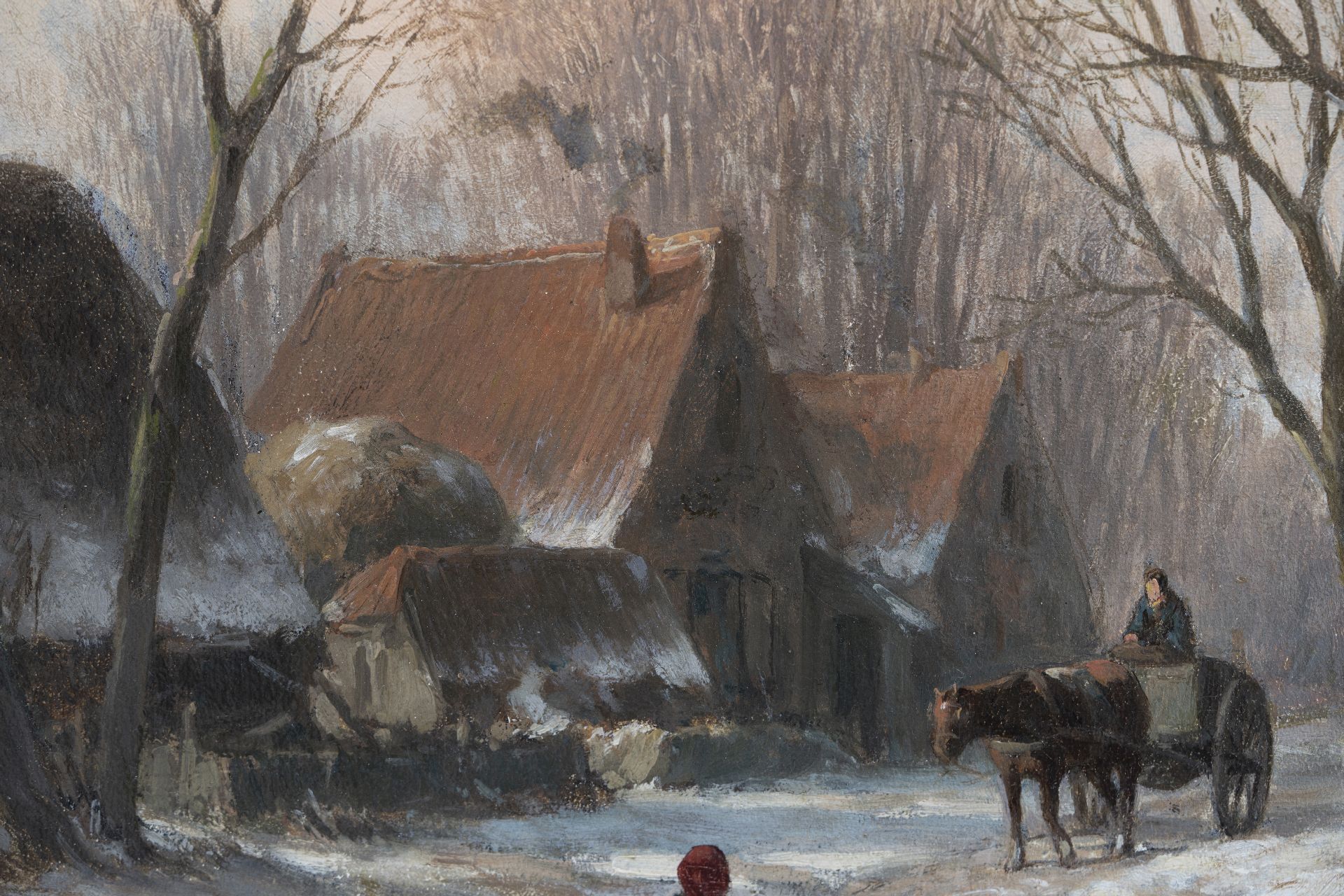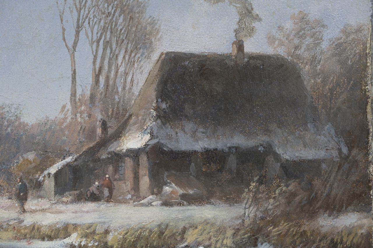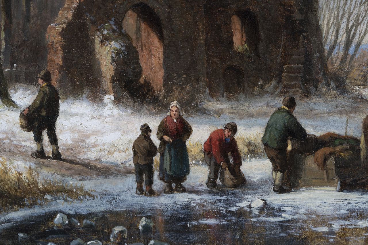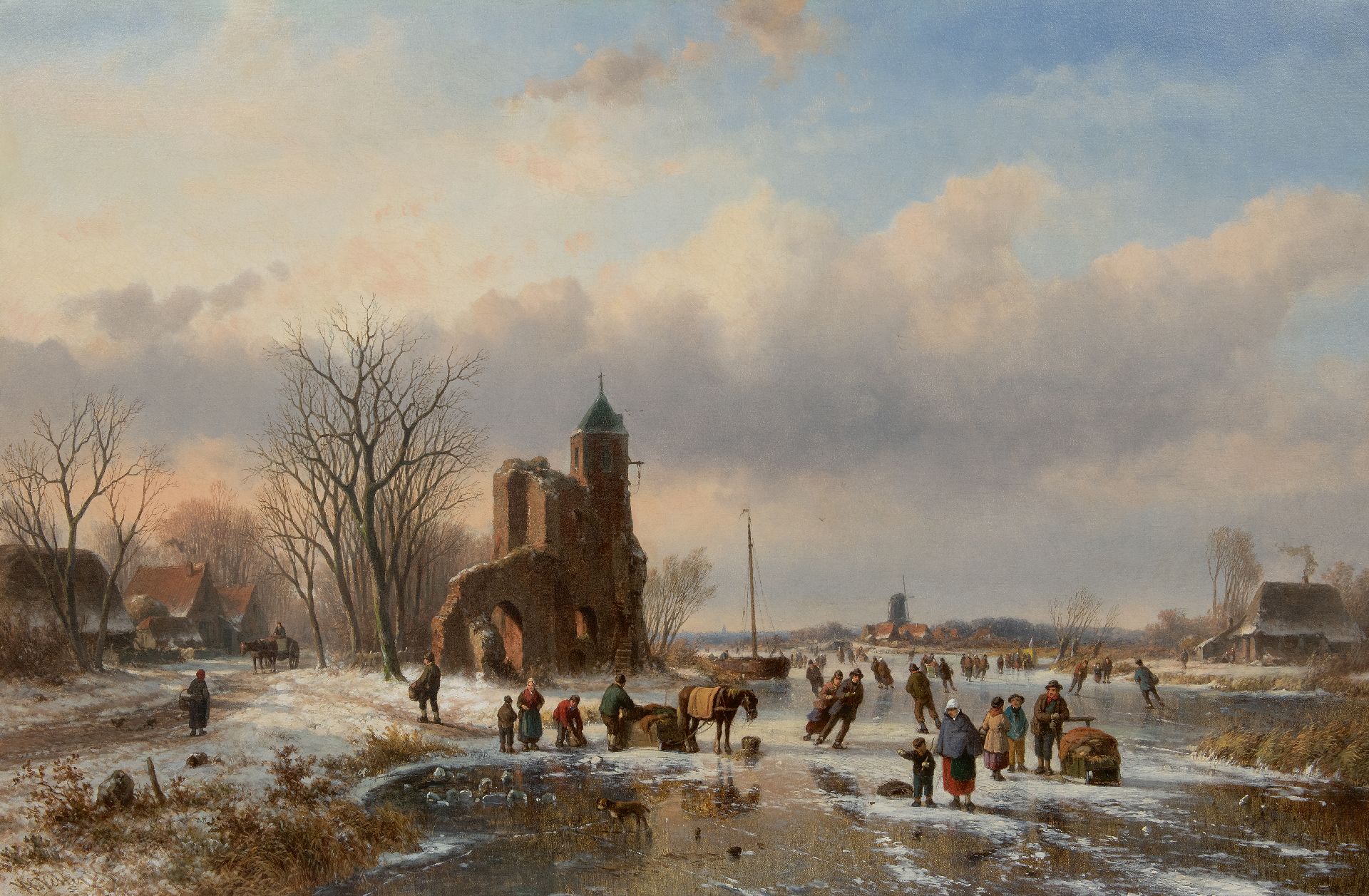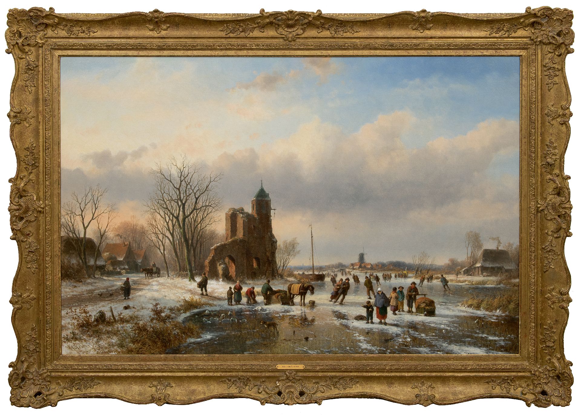 Willem Vester kunstwerk • schilderij • voorheen te koop Schaatsers op het ijs bij een kasteelruïne