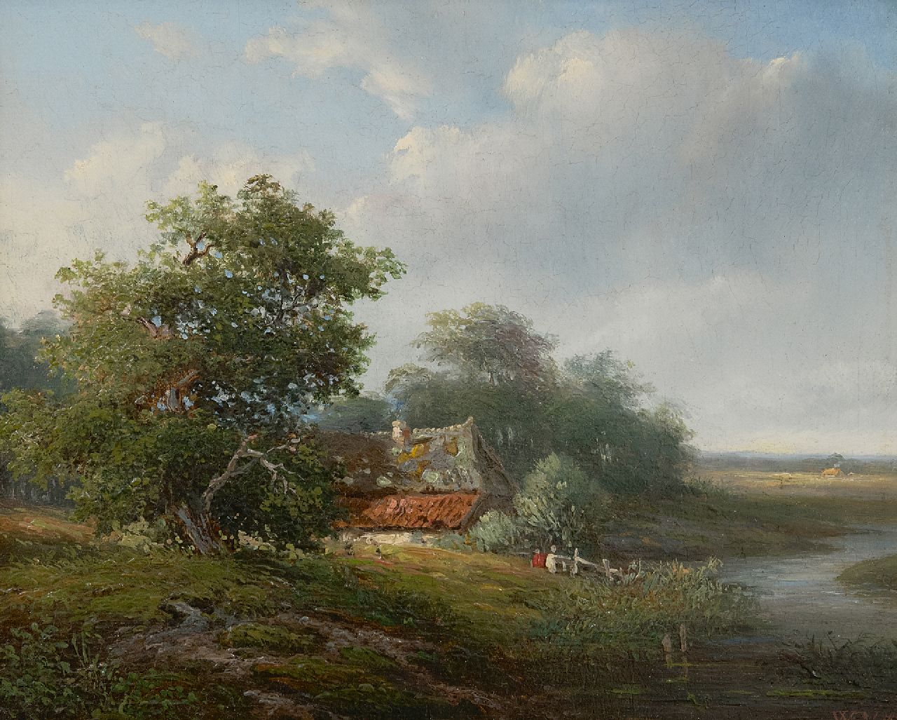 Willem Vester kunstwerk • schilderij • te koop Zomerlandschap met boerenhoeve