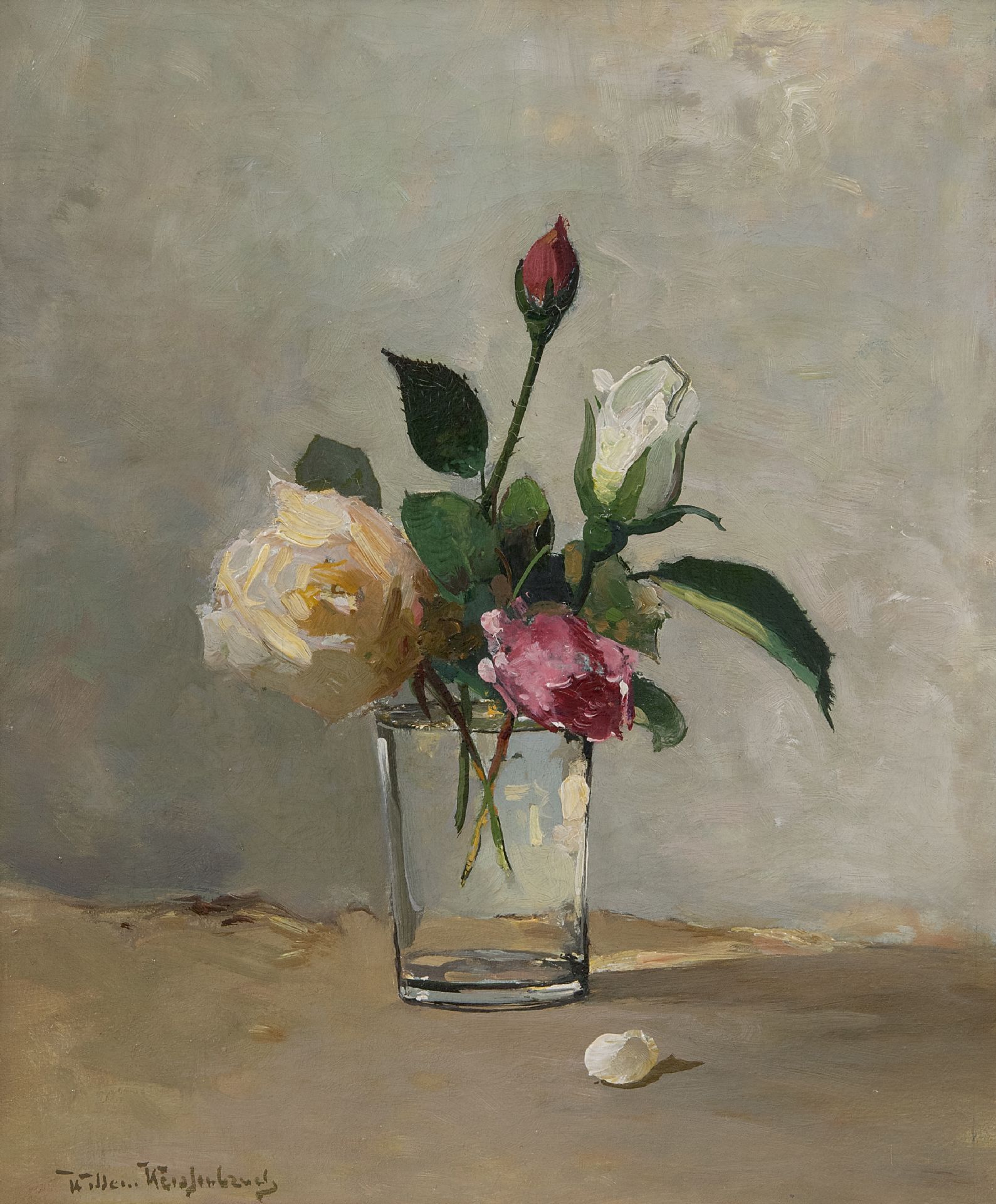 Willem Weissenbruch kunstwerk • schilderij • te koop Stilleven met rozen in een glas