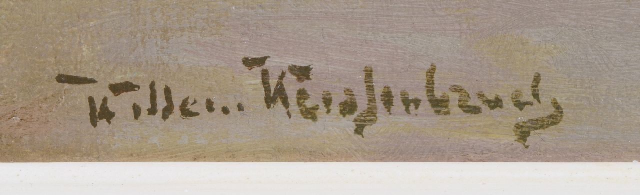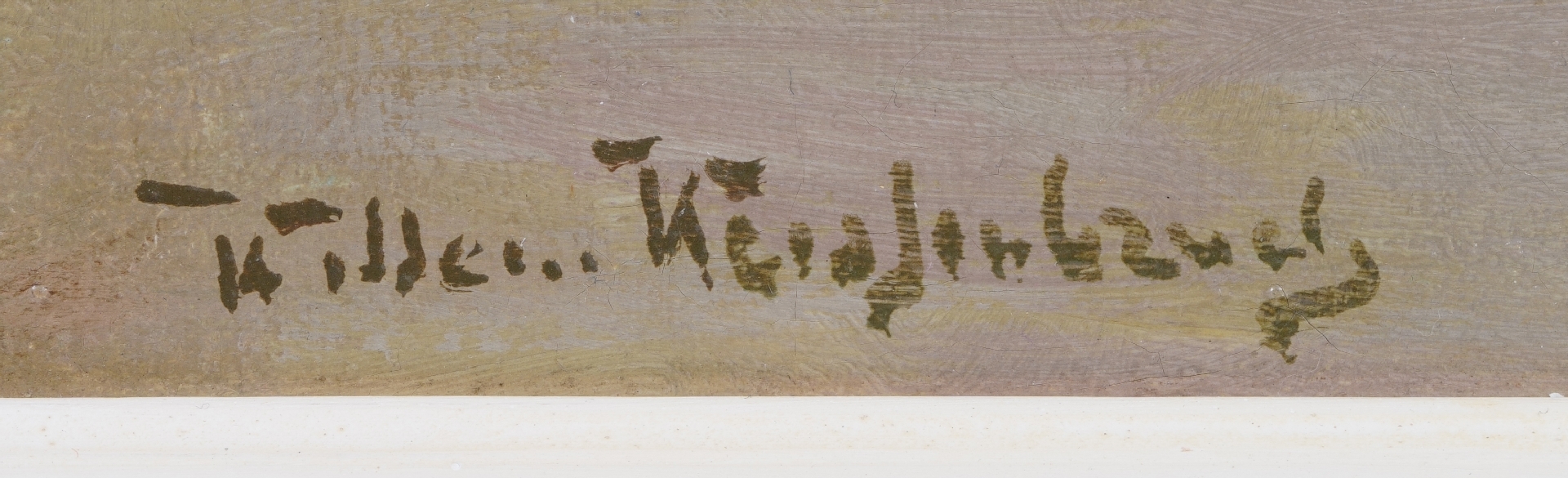 Willem Weissenbruch, zoon en leerling van de Haagse-Schoolschilder H.J. Weissenbruch, trad wat stijl en onderwerpkeuze betreft in de voetsporen van zijn vader. Hij schilderde landschappen met water en haven- en strandgezichten, waarvoor hij inspiratie opdeed in en rond Den Haag. Ook woonde hij geruime tijd in De Kaag, Noorden, Nieuwkoop en het Gooi. In de voor hem karakteristieke losse en vrije impressionistische stijl schilderde hij ook een aantal stillevens.
