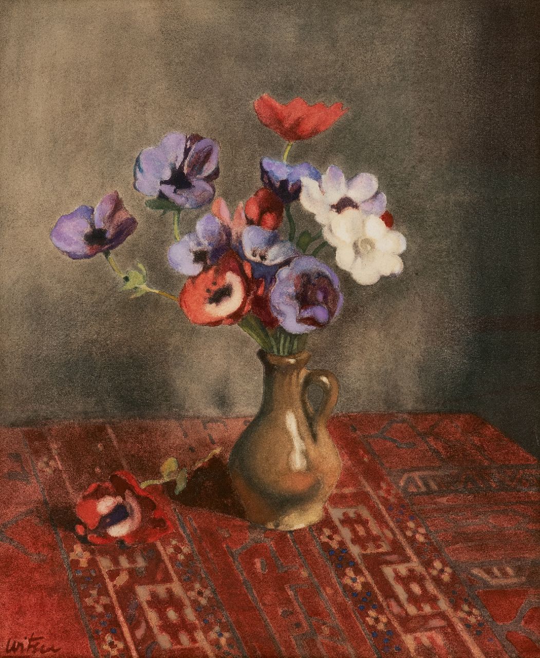Willem Witsen kunstwerk • aquarel • tekening • te koop Anemonen in aardewerken vaasje