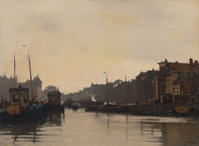 Willem Witsen | Gezicht op de Waalseilandsgracht en de Kraansluis, Amsterdam, olieverf op doek, 51,4 x 69,2 cm, gesigneerd r.o. en te dateren 1911-1913