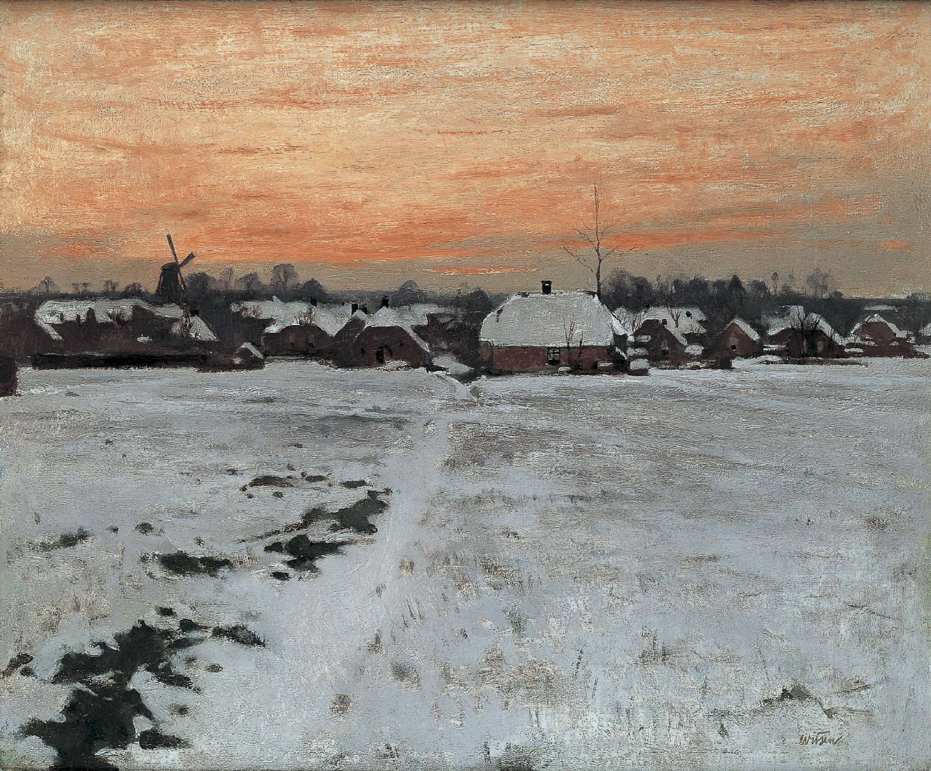 Willem Witsen kunstwerk • schilderij • voorheen te koop Winteravond in Ede