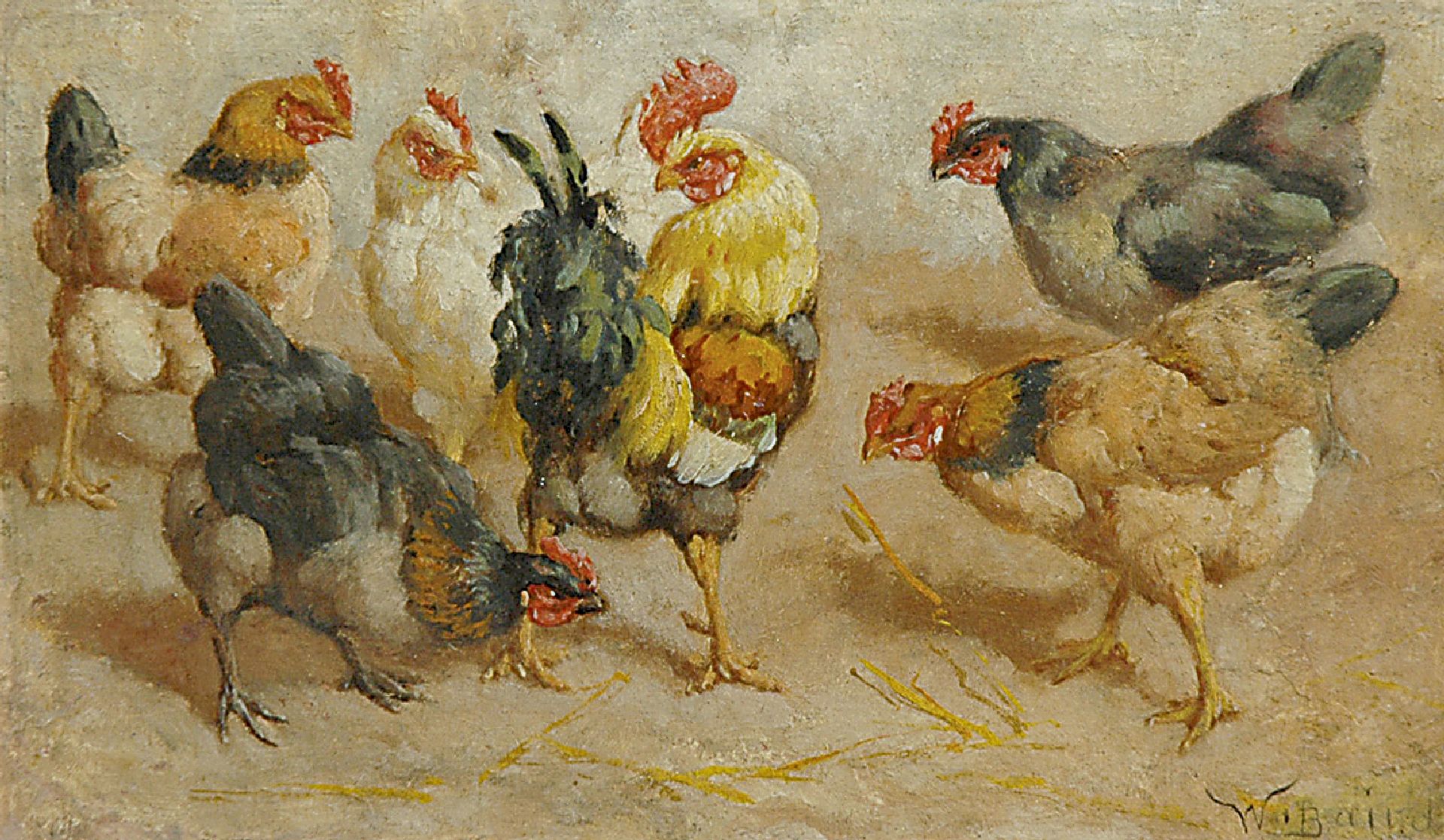 William Baptiste Baird kunstwerk • schilderij • voorheen te koop De baas van het kippenhok