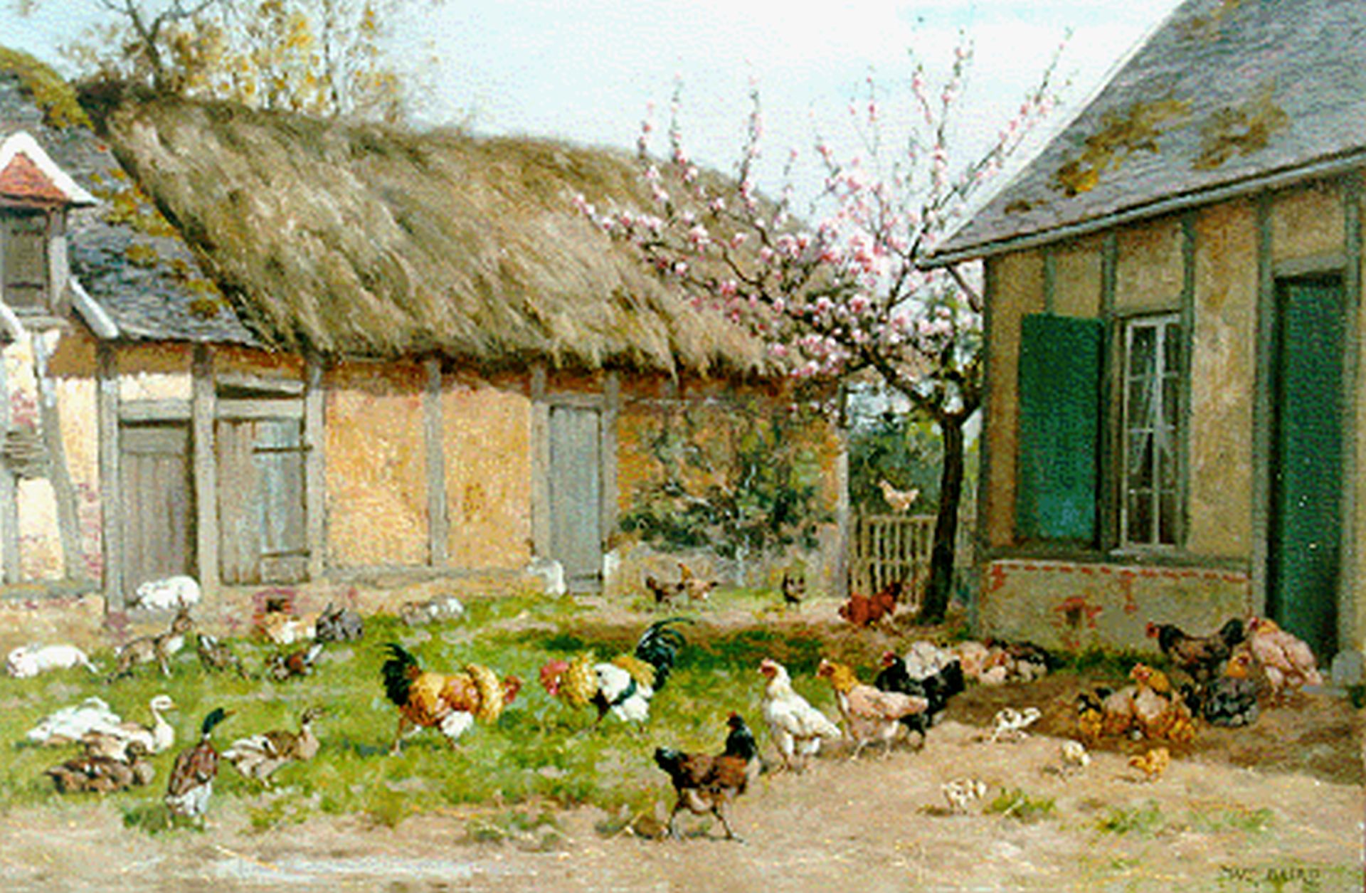 William Baptiste Baird kunstwerk • schilderij • voorheen te koop Hanengevecht op boerenerf