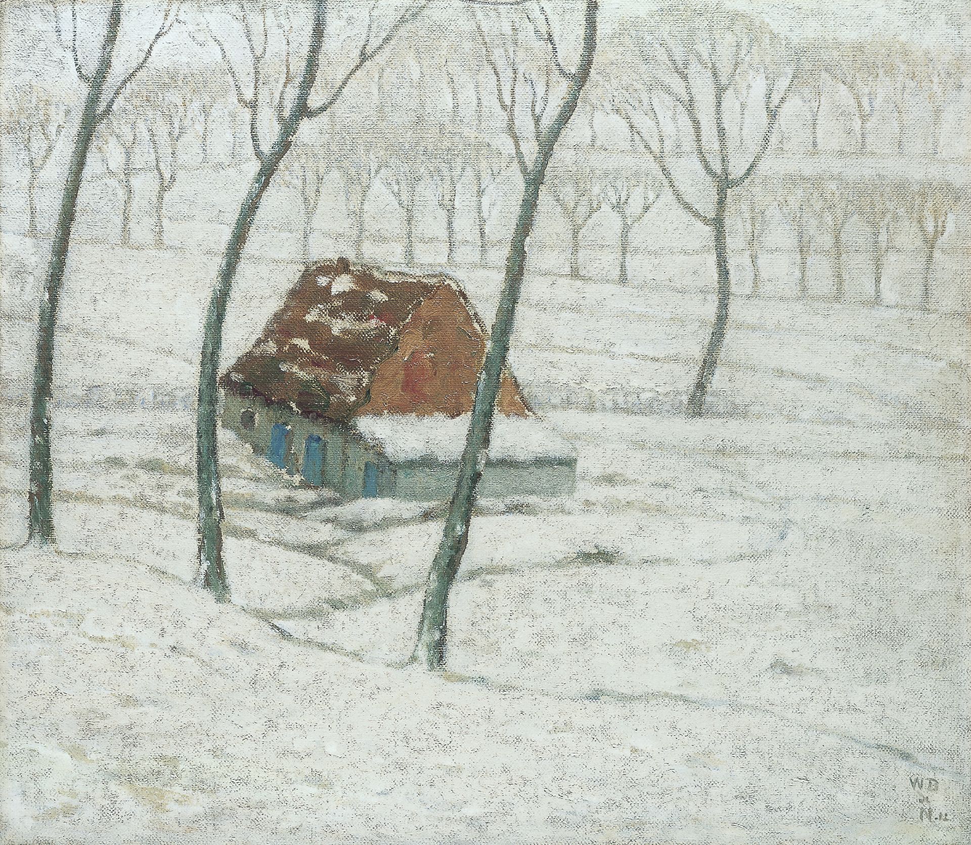 William Degouve de Nuncques kunstwerk • schilderij • voorheen te koop Boerderij in de sneeuw