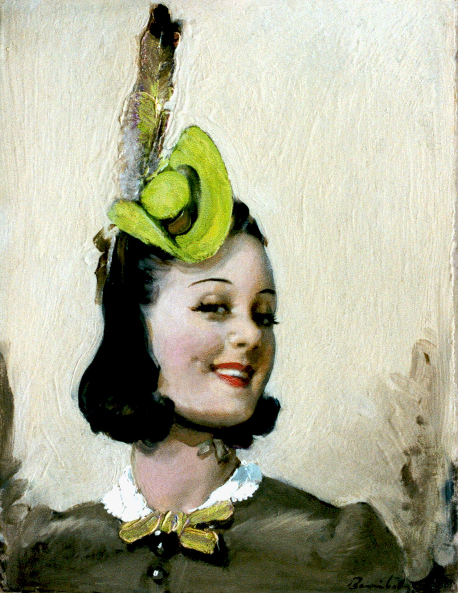William H. Barribal kunstwerk • schilderij • voorheen te koop Dame met groene hoed