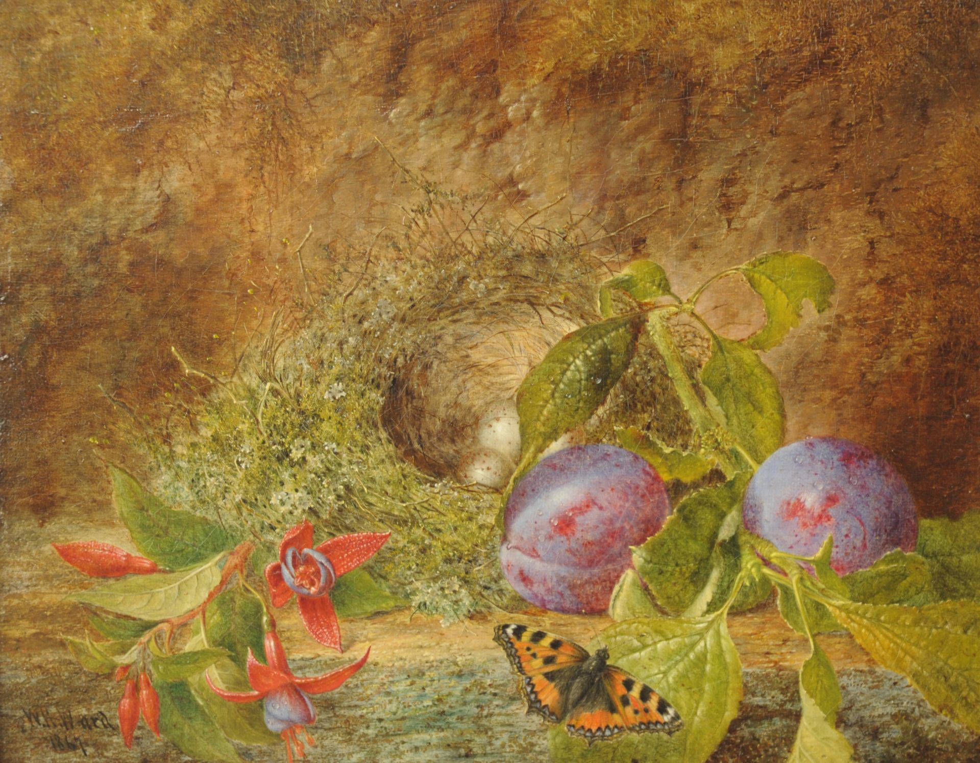 William Henry Ward kunstwerk • schilderij • voorheen te koop Stilleven met vogelnestje en vlinder